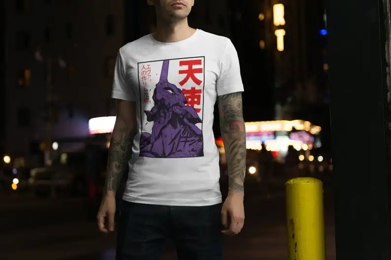 Забавная аниме футболка унисекс, Повседневная тенниска из ЭВА, бела...