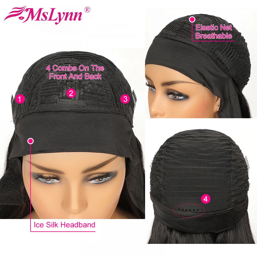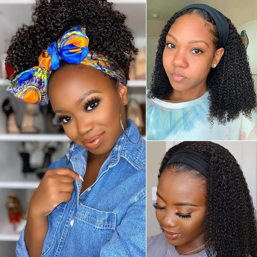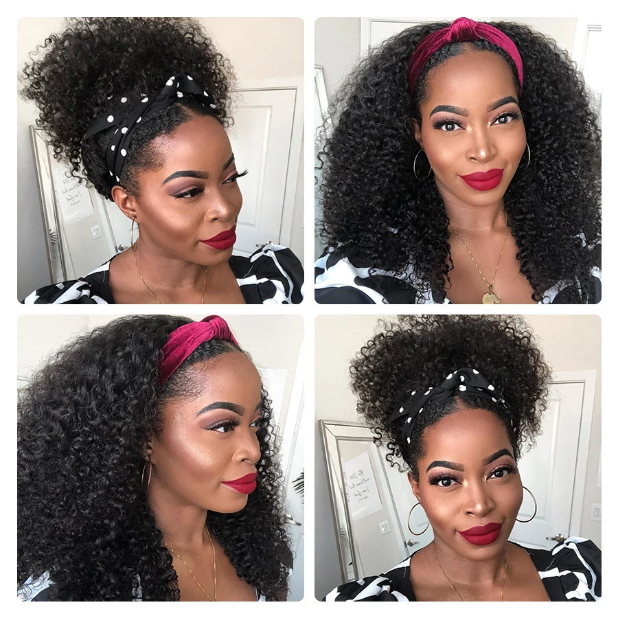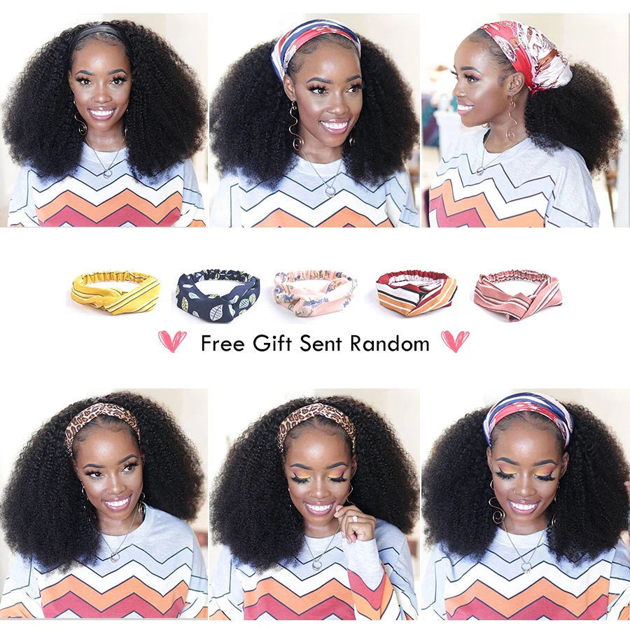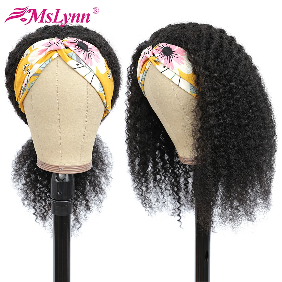 Парик из парик с головной повязкой натуральных кудрявых волос Mslynn, бразильский, без шнурка, с прикрепленной повязкой на голову, полностью машинное изготовление