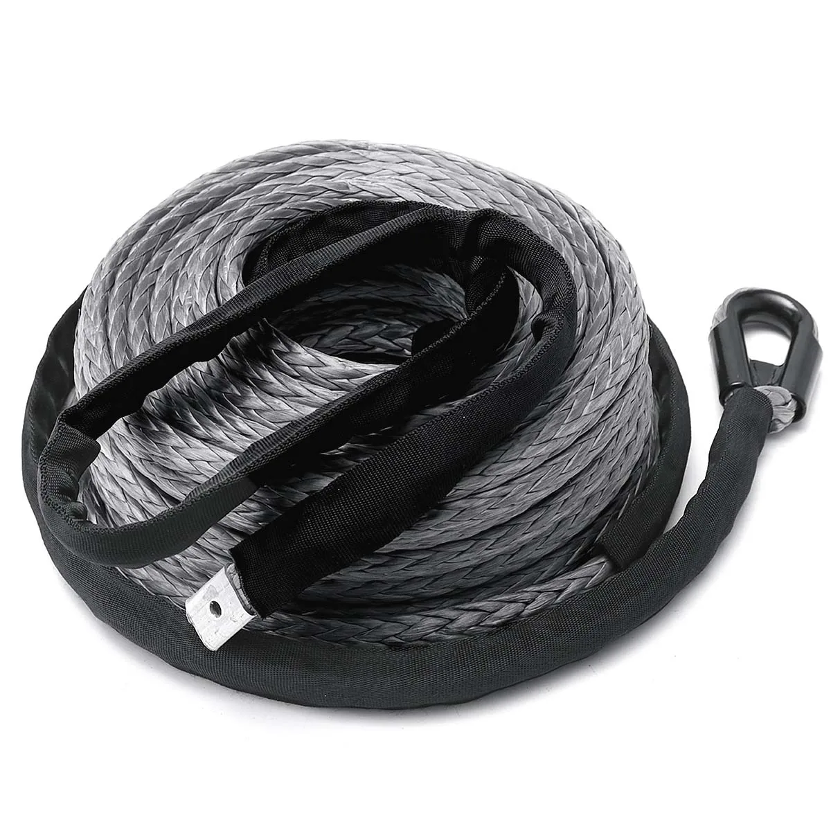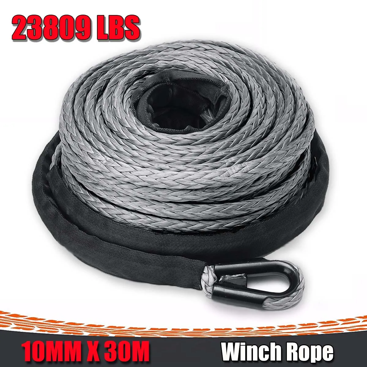 Буксировочный трос, 10 мм х 30 м, высокопрочный синтетический трос для лебедки ATV UTV, буксировочный трос с оболочкой серого цвета для внедорожников 4x4