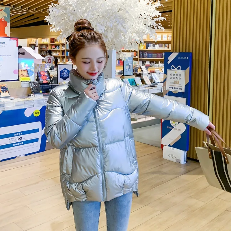 Женская хлопковая куртка, блестящая яркая зимняя куртка для женщин,...