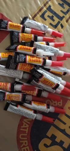 Клей хороший, беру не в первый раз. Хорошо склеивает части мозайки, кожаные части и деревянные. Шло очень долго, мне уже надоело ждать. Взяла много, потому что есть пустые тюбики и есть тюбики наполненные наполовину. Но стоит очень мало. Поэтому нестрашно.