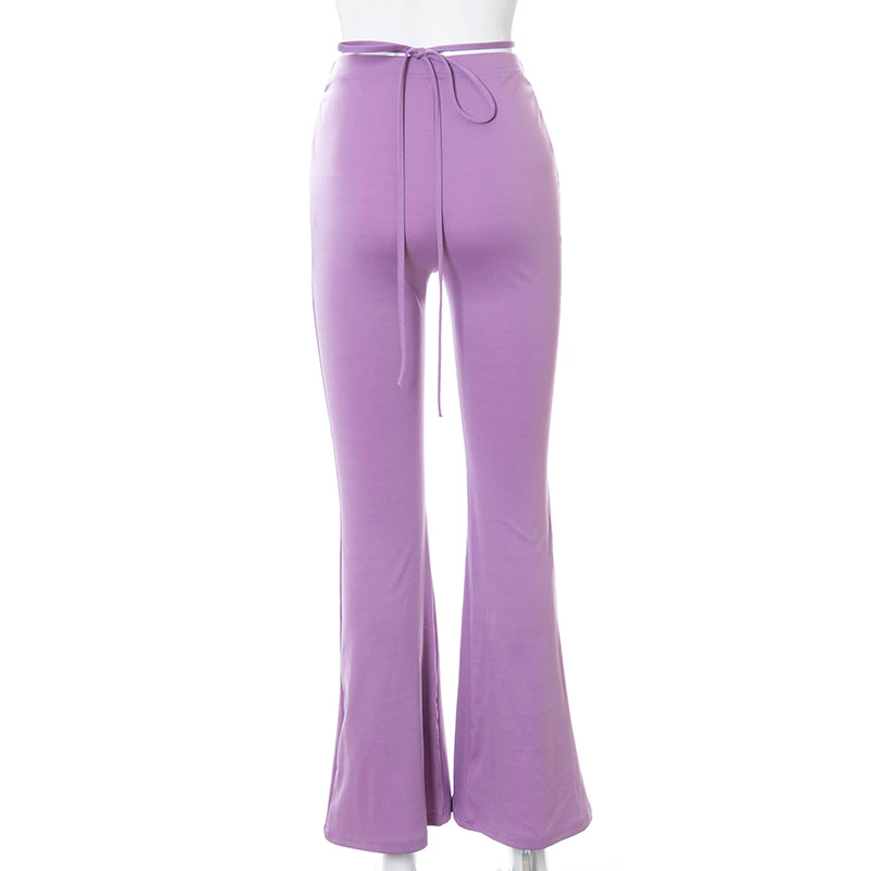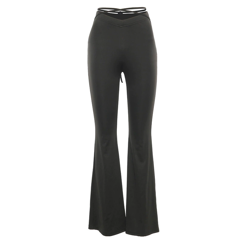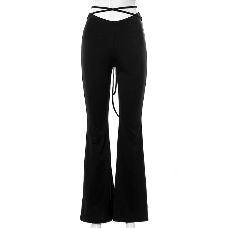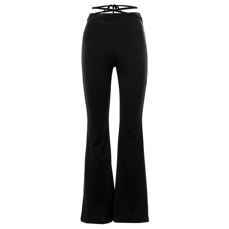 Брюки-клеш Женские, с высокой талией, черные, на шнуровке, 2021