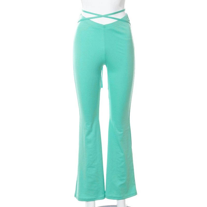 Брюки-клеш Женские со шнуровкой, пикантные Стрейчевые штаны с низко...