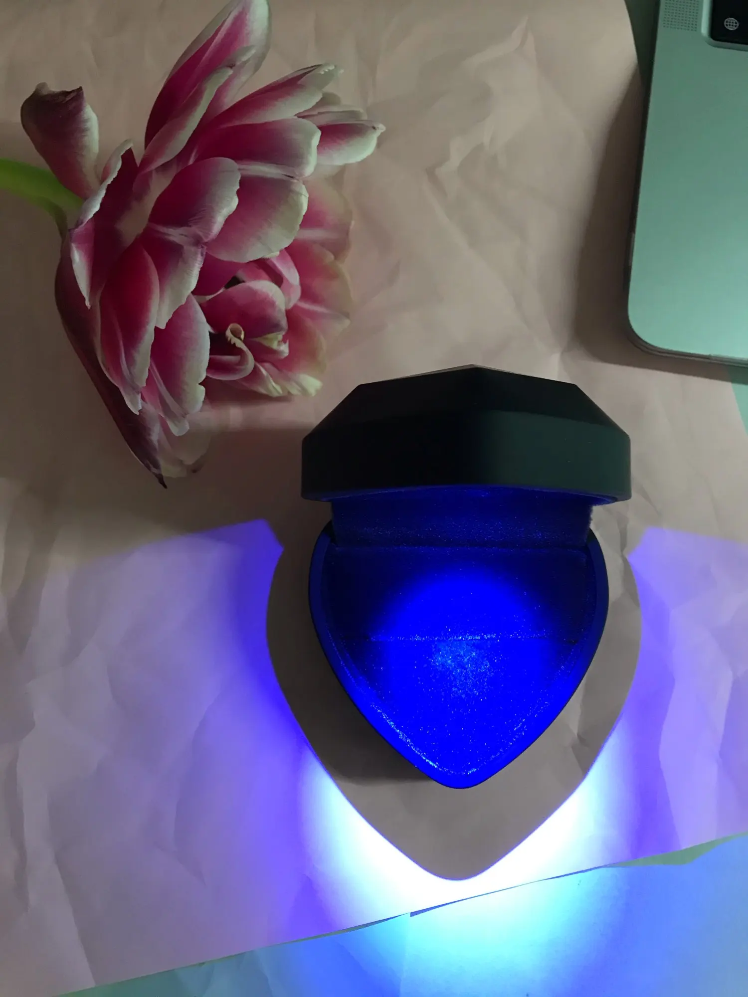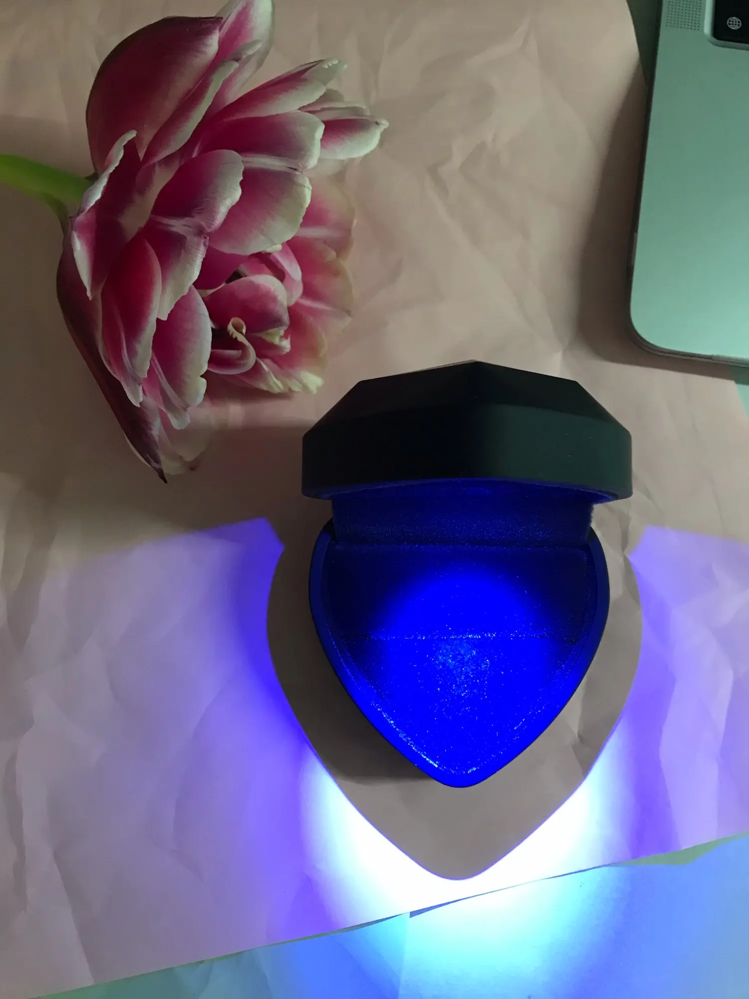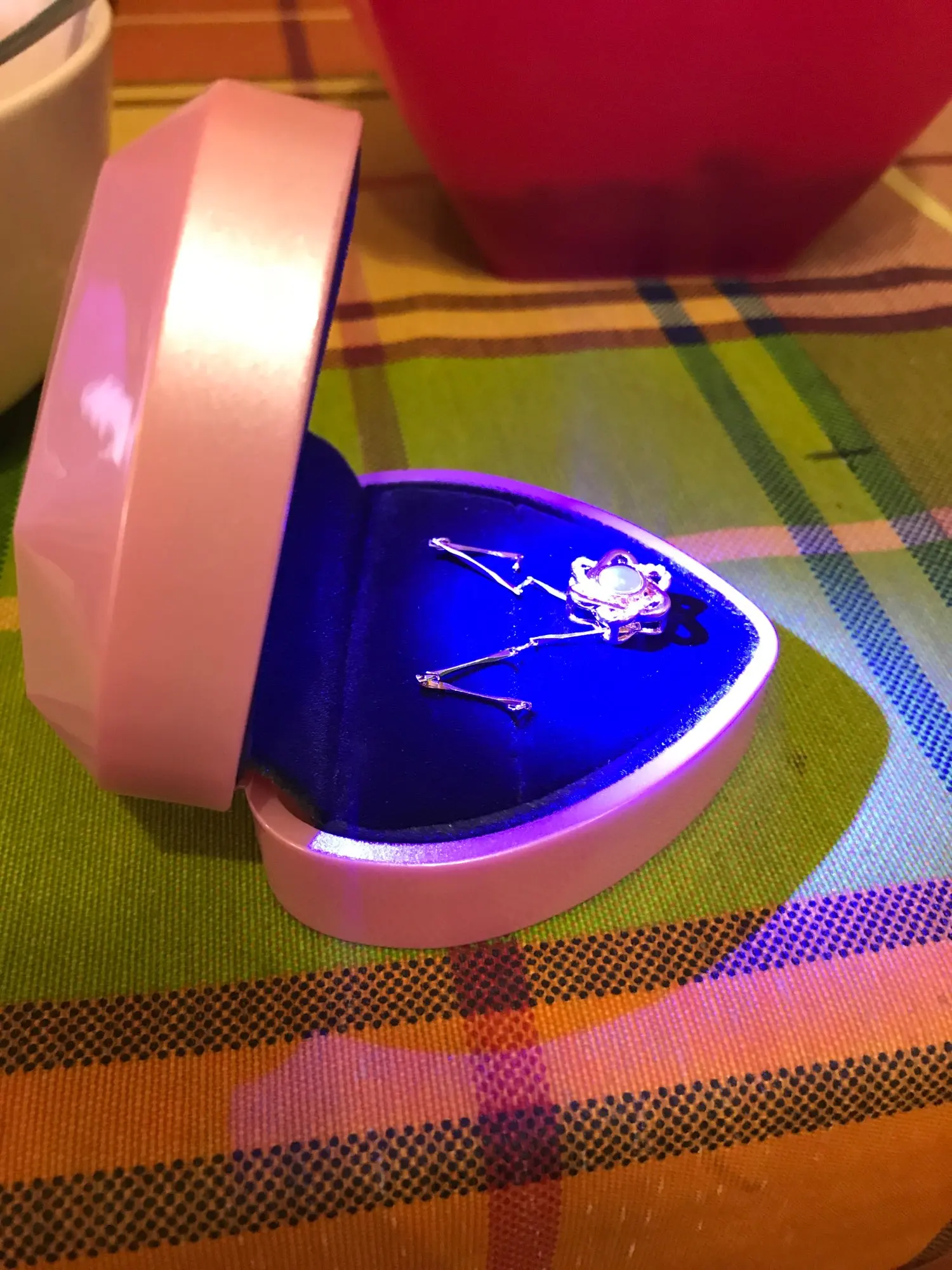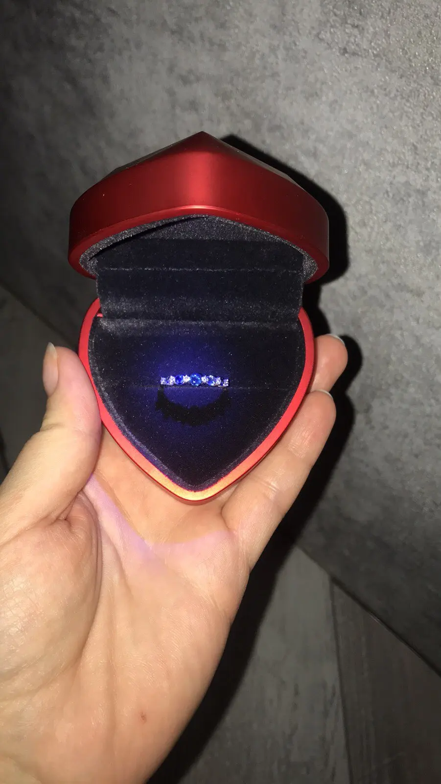 Шкатулка для обручального кольца, со светодиодсветильник кой, в форме сердца