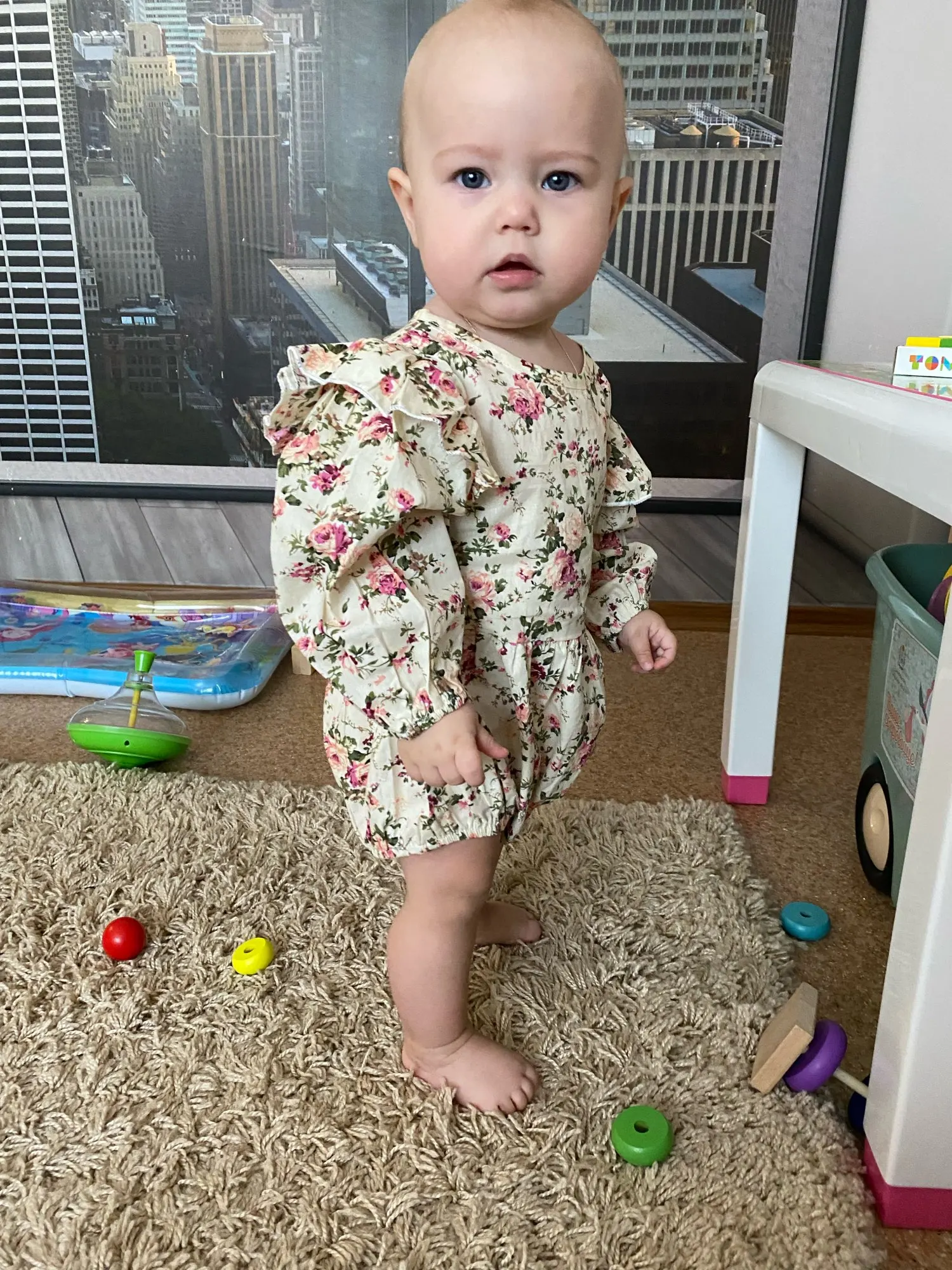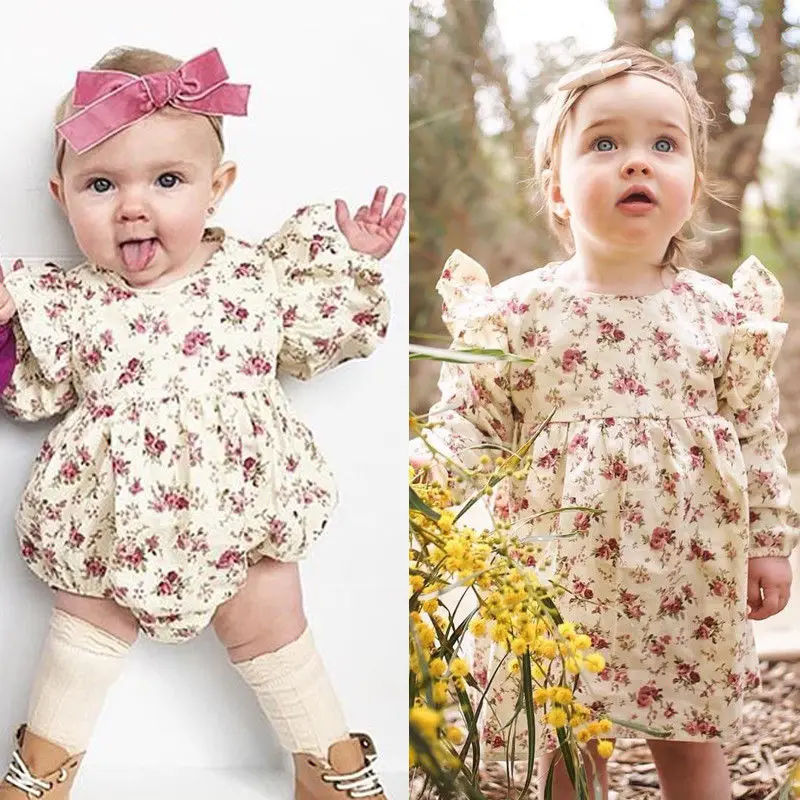 Комбинезон детский, для девочек, с длинным рукавом, винтажный, с цветочным принтом
