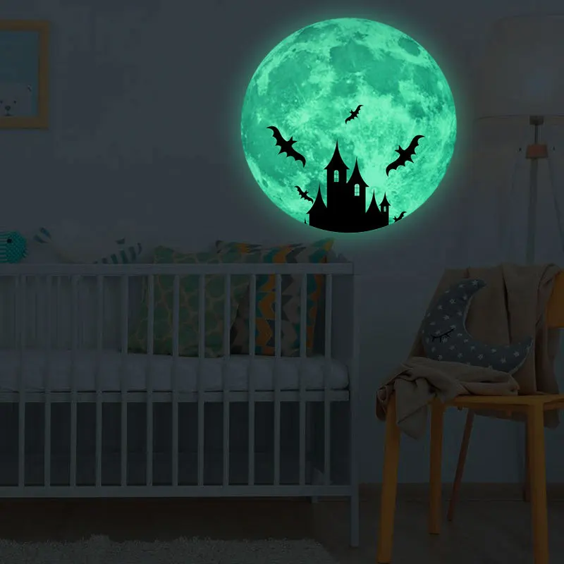 Светящаяся луна, летучая мышь Настенная Наклейка с изображением зам...