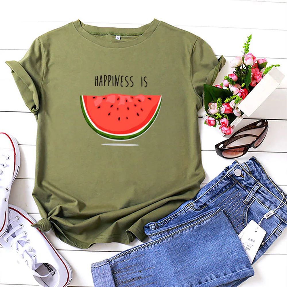 Не упустите возможность арбуза футболка для женщин, короткий рукав, женские хлопковые футболки с О-образным вырезом свободная футболка, женская обувь, черные, Camisetas Mujer топы