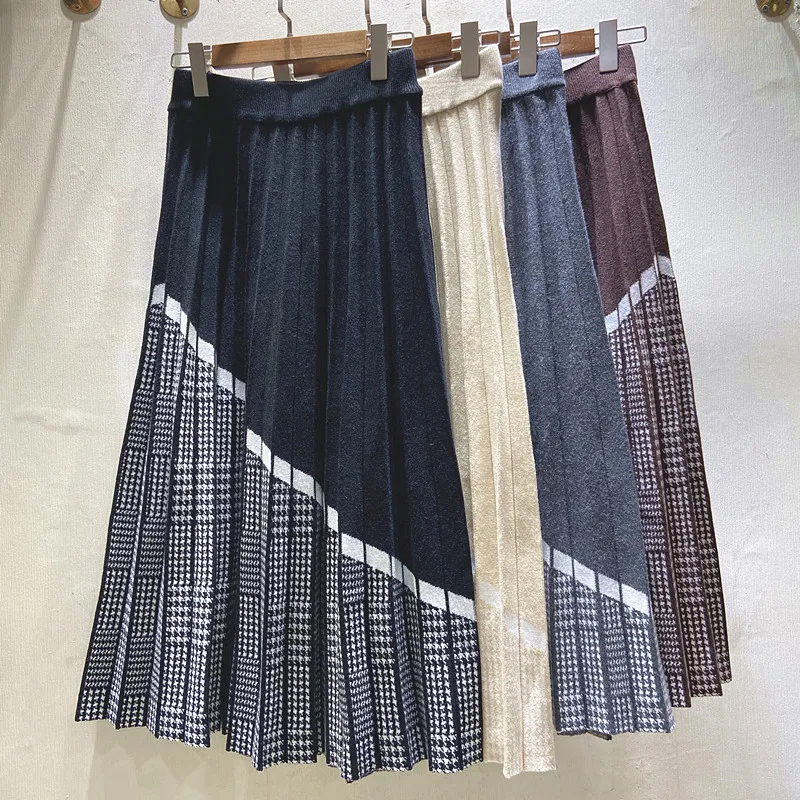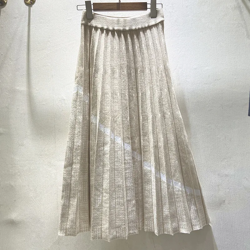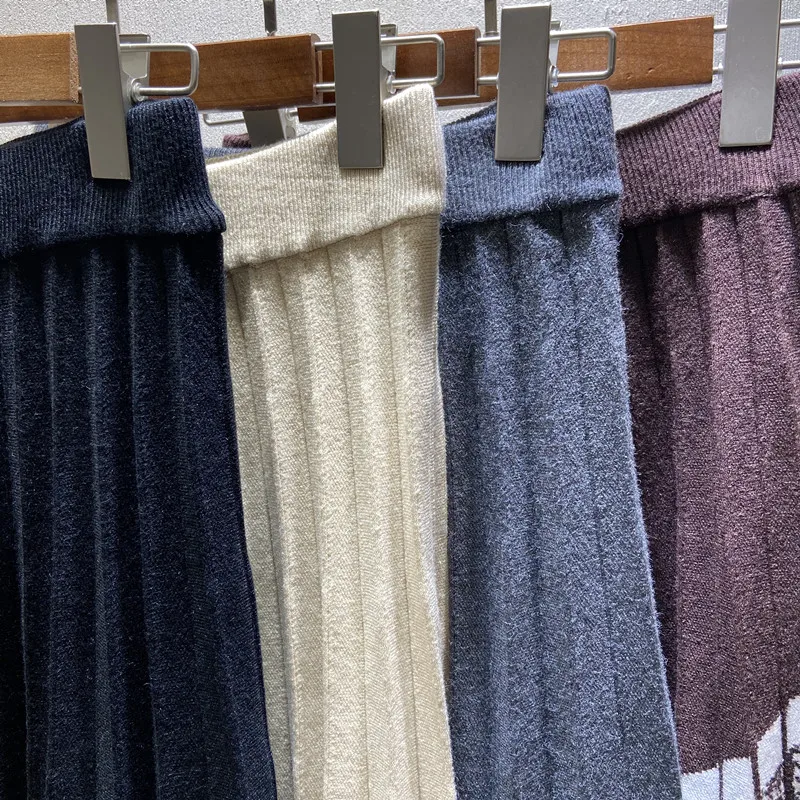 Юбка Шерстяная Женская, со складками, с высокой талией, Осень-зима, 2021