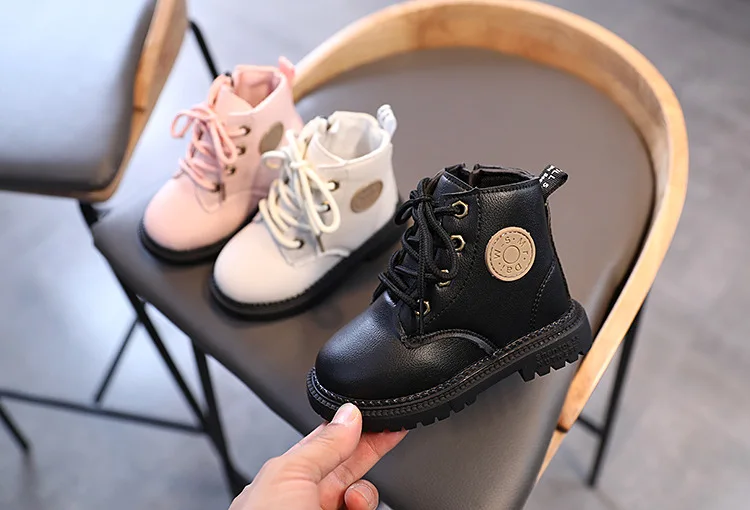 Детские ботинки, новинка зимы 2021, хлопковая обувь, мягкие кожаные ботинки для девочек, Плюшевые Ботинки Martin, модная дикая детская обувь E176