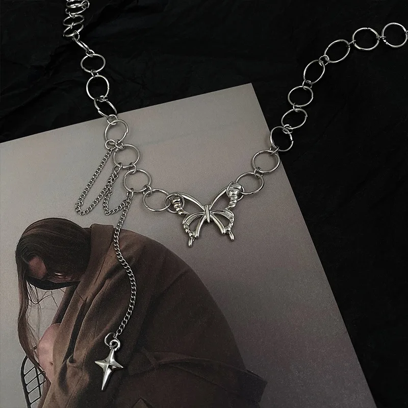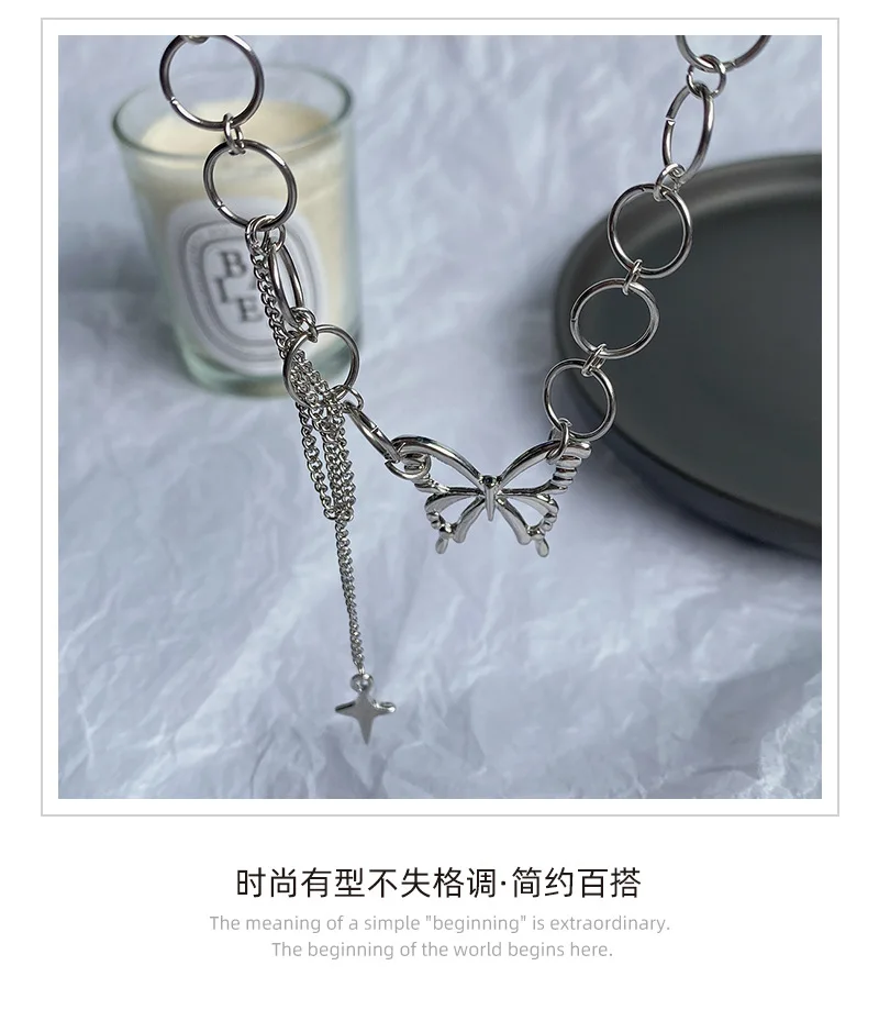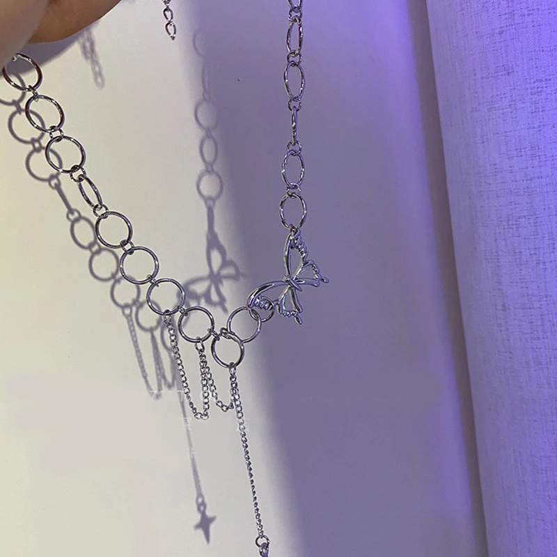 винтаж харадзюку милые готика полый бабочка Крест Длинная кисточка панк цепь-чокер ожерелье для женщин девушек уличная мода ювелирные изделия 2021 цепочка на шею женская Нательные украшения софт герл аксессуары