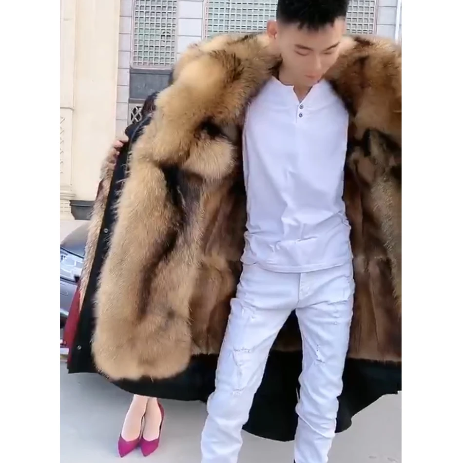 Мужские парки, пальто, куртка из натурального меха енота, зимняя мо...