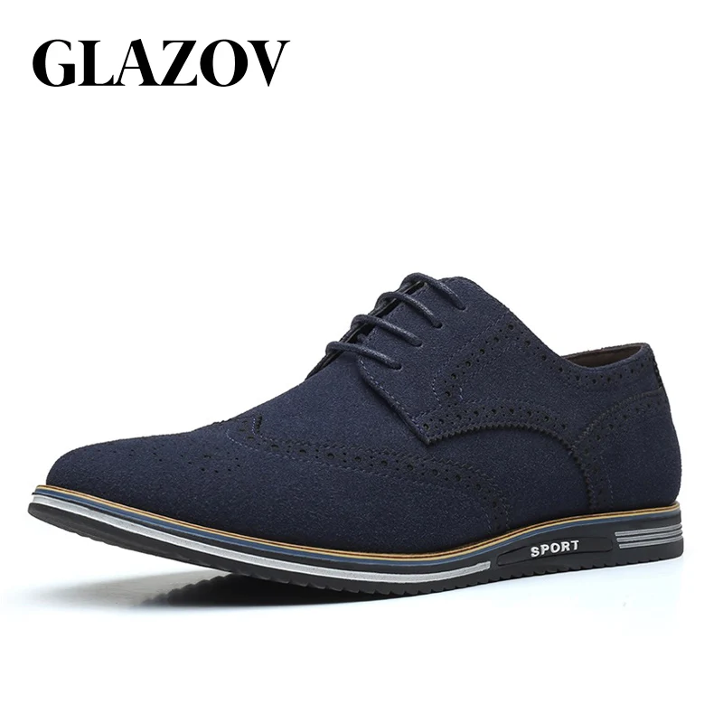 Классические Мужские броги, кожаная обувь из матовой замши, повседн...