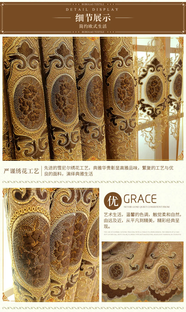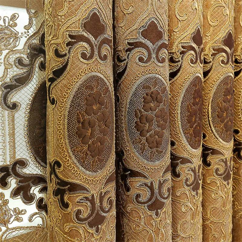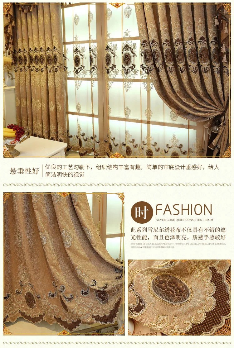Роскошные коричневые шенильные занавески в европейском стиле, прозр...