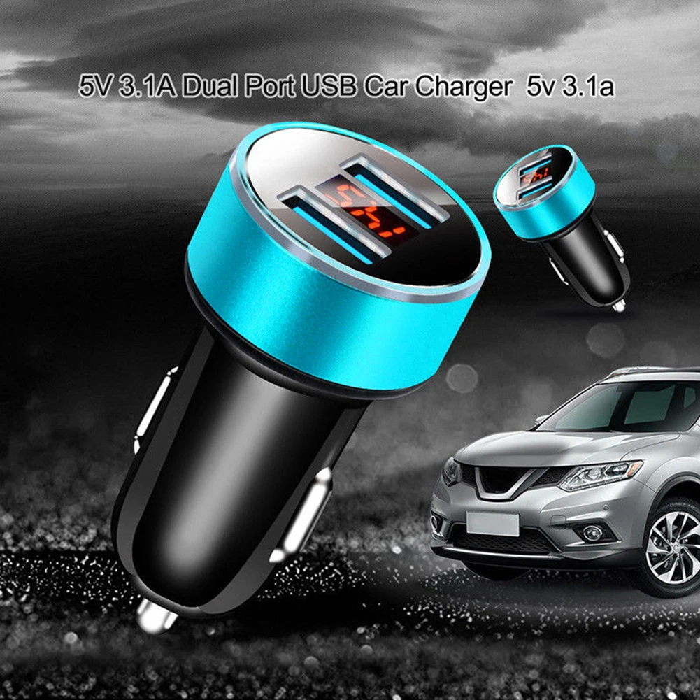 Портативное быстрое зарядное устройство для сотовых телефонов, двойной USB-разъем, светодиодный цифровой дисплей, быстрая зарядка 5 В, 3,1 А, автомобильное зарядное устройство, аксессуары