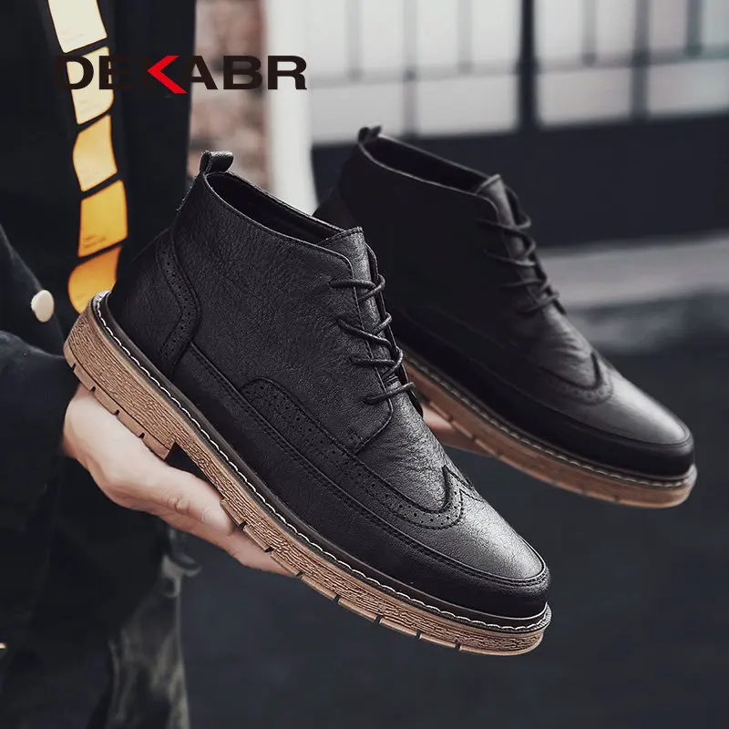 Мужские кожаные ботильоны DEKABR, в стиле Брок, деловые рабочие ботинки, увеличивающие рост