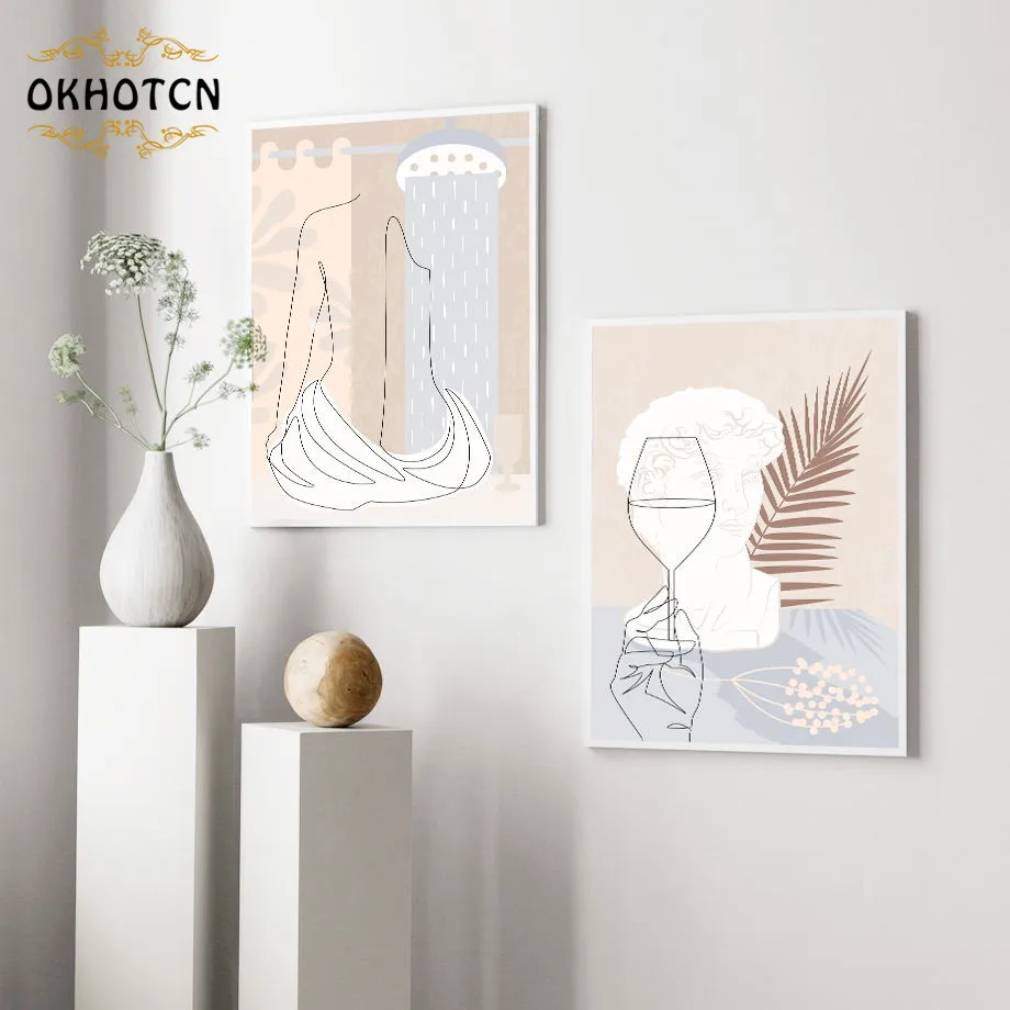Постер скандинавских линий, Настенная декоративная живопись, абстрактное тело, ваза, абстрактная линия, холст, картины с принтом, украшение для дома