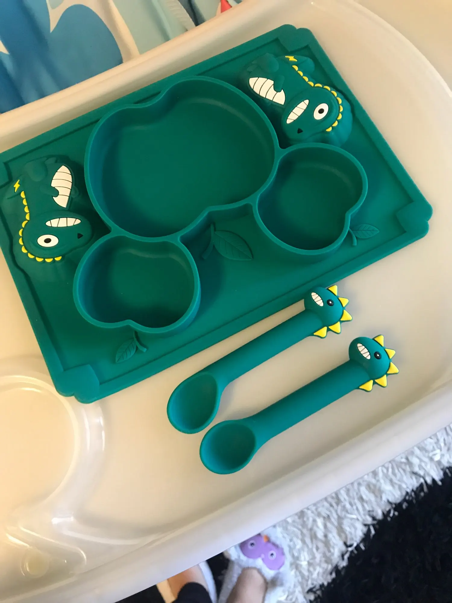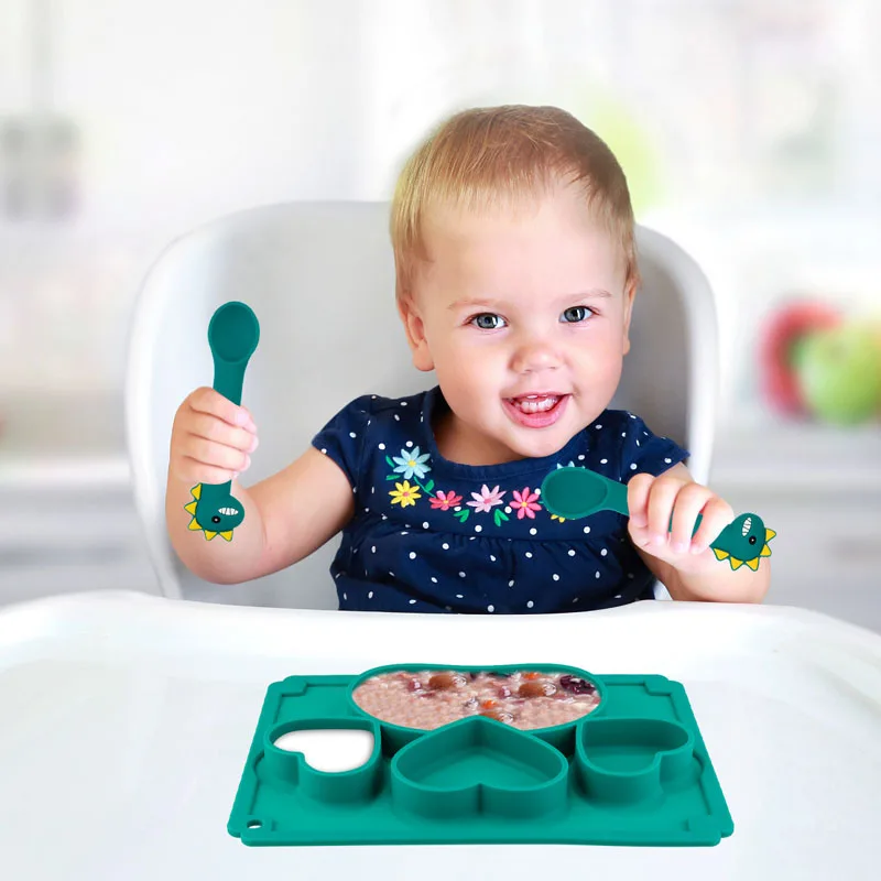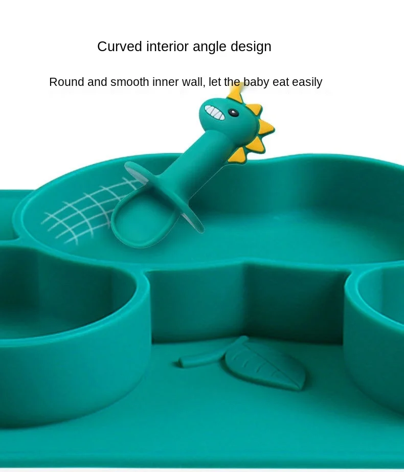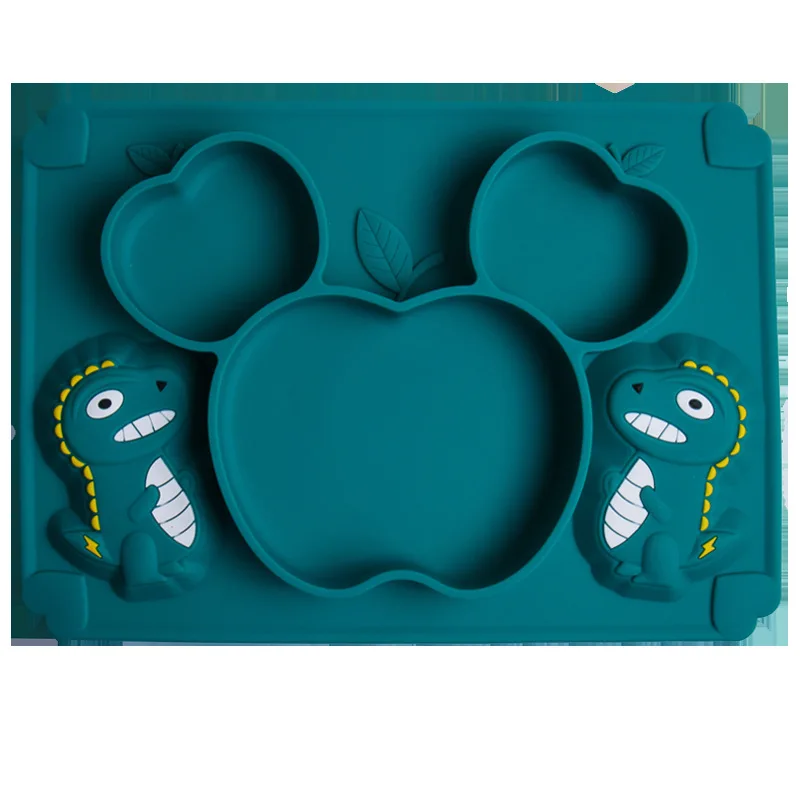 Детская обеденная тарелка TYRY.HU, набор для кормления ребенка тарелка, тренировочная тарелка, ложка, вилка, динозавр, мультяшная иллюстрация, нескользящая обеденная тарелка