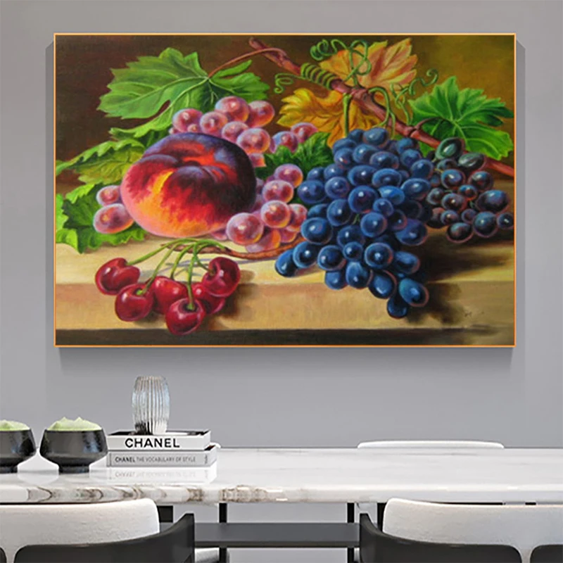 Современная Картина на холсте с виноградом, яблоком, постеры и принты в скандинавском стиле с фруктами для кухни, настенные картины для гостиной, украшения дома