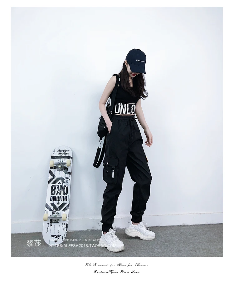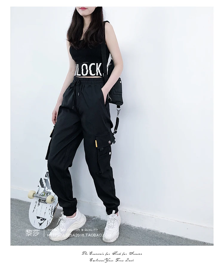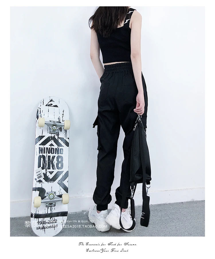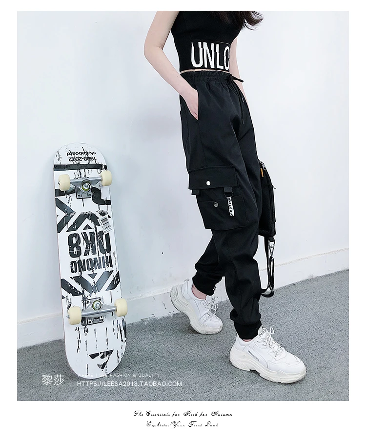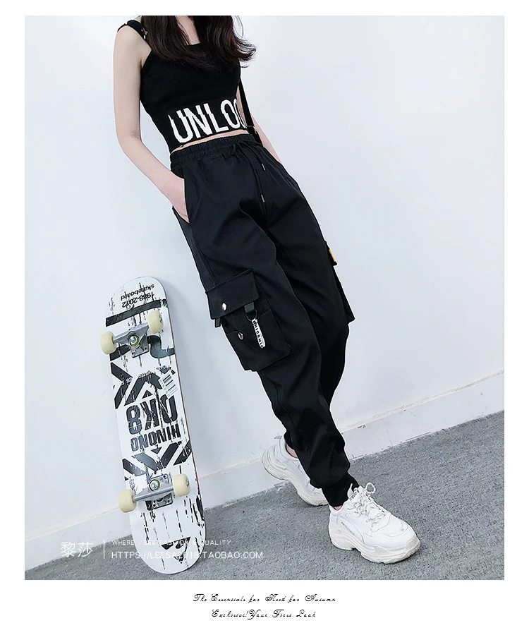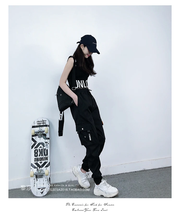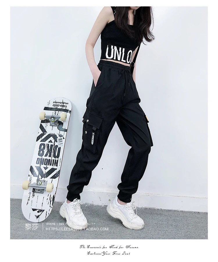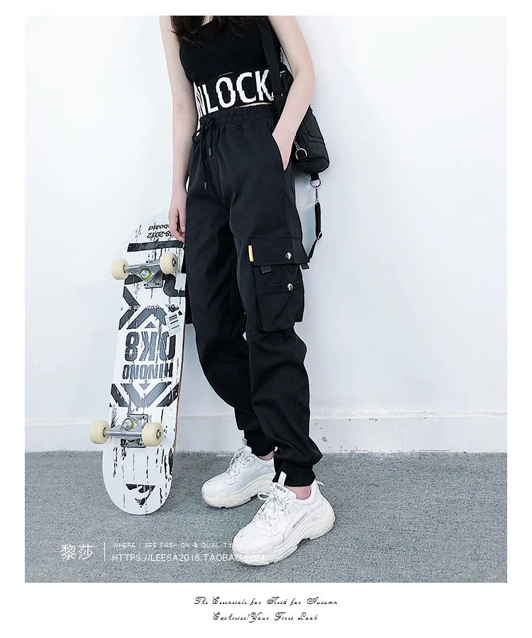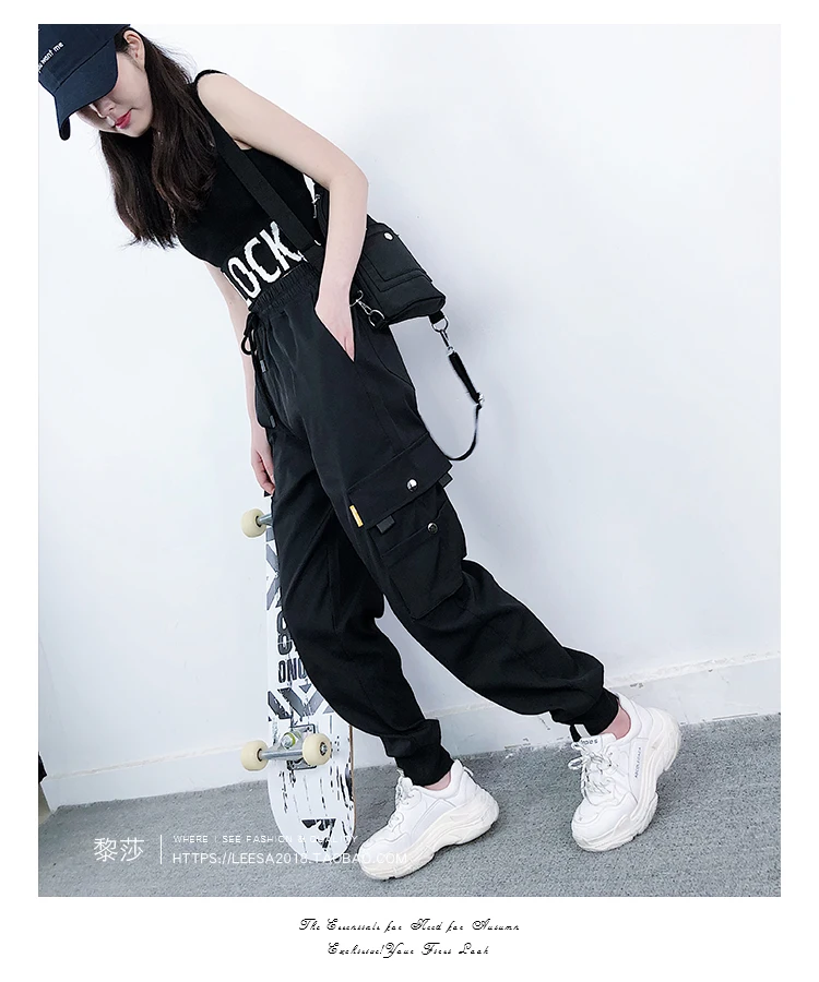 Уличные длинные брюки женские, карго, эластичные свободные черные штаны для бега, повседневные штаны в стиле хип-хоп, размера плюс