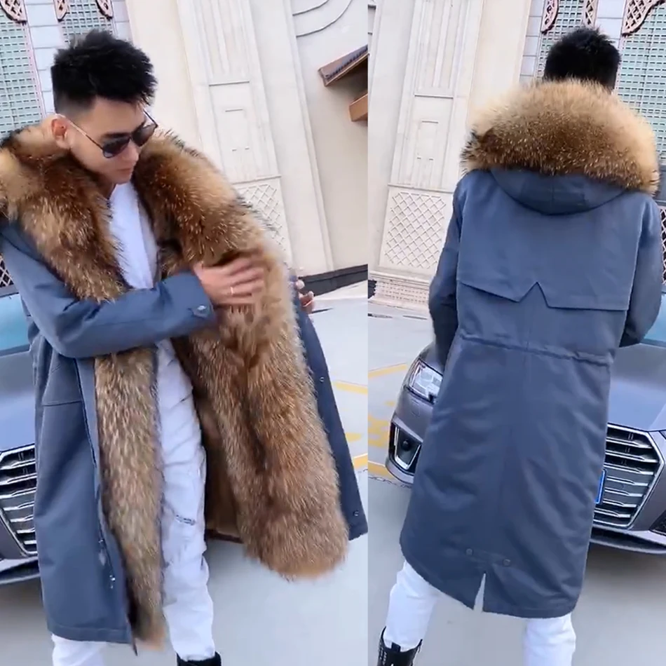 Мужские парки, пальто, куртка из натурального меха енота, зимняя мо...