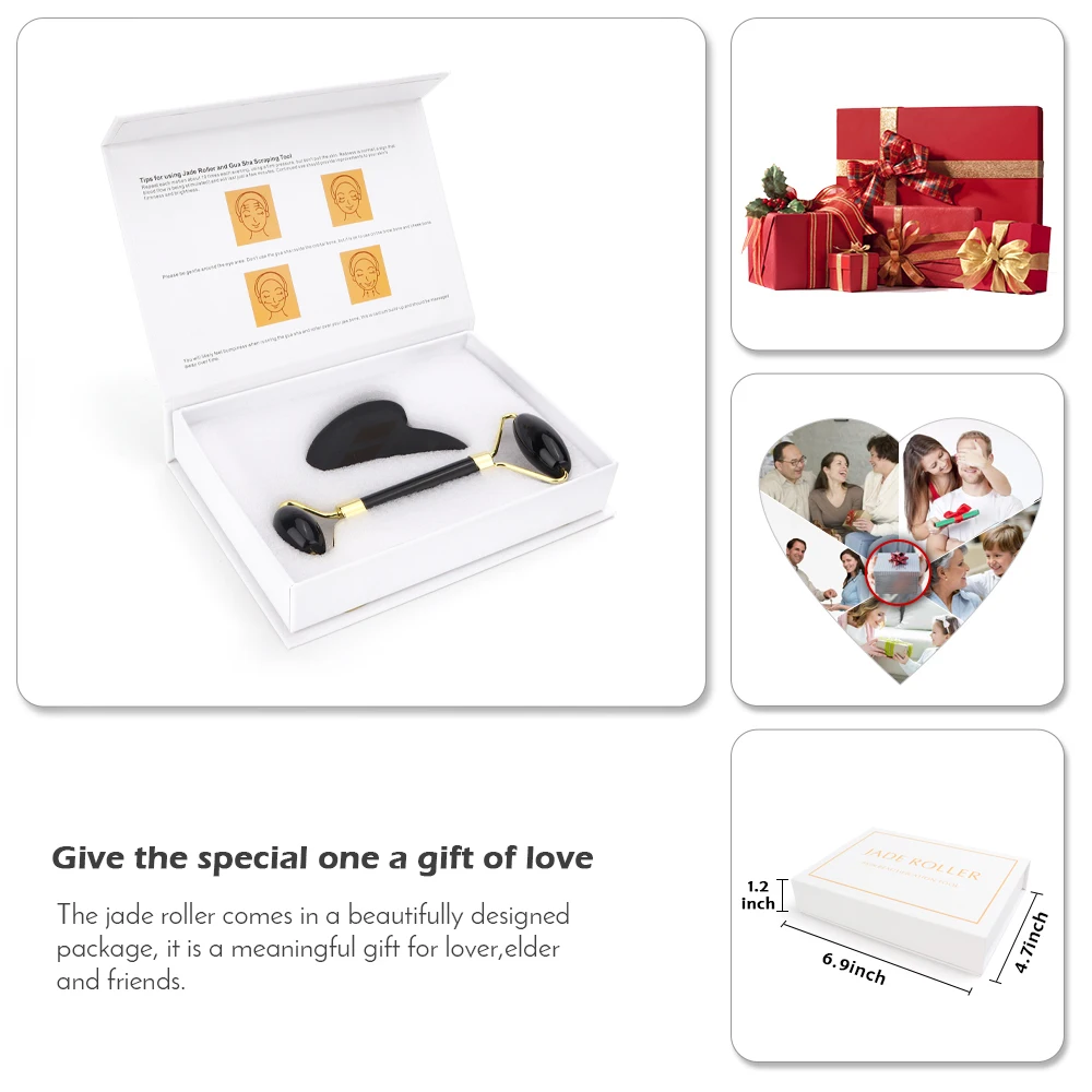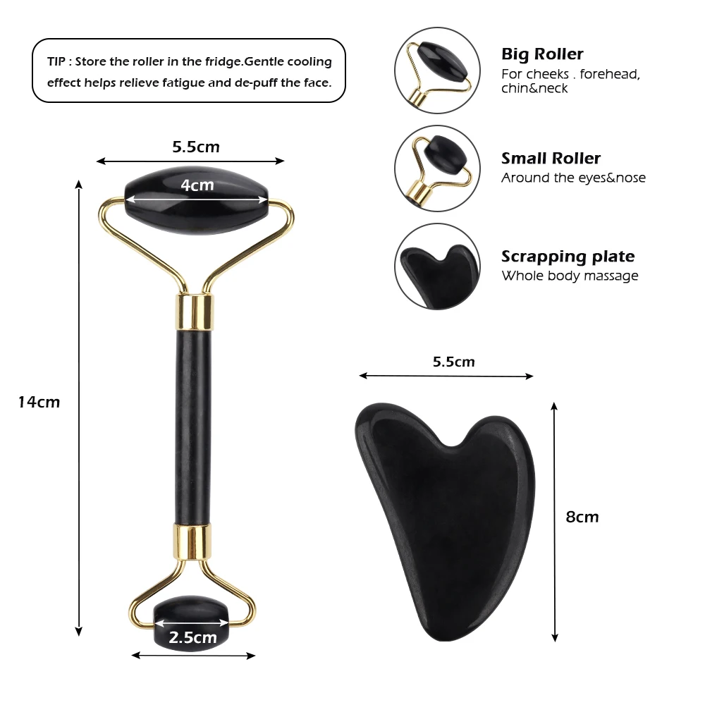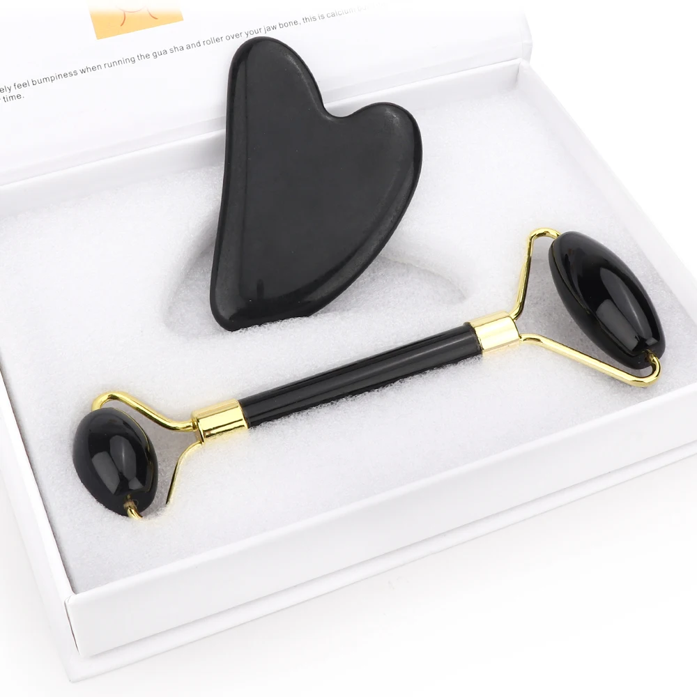 Нефритовый ролик для подтяжки лица, гуа-Ша массаж наборов, массаж лица из обсидиана в форме сердца, ролик из натурального камня, против морщин, уход за кожей