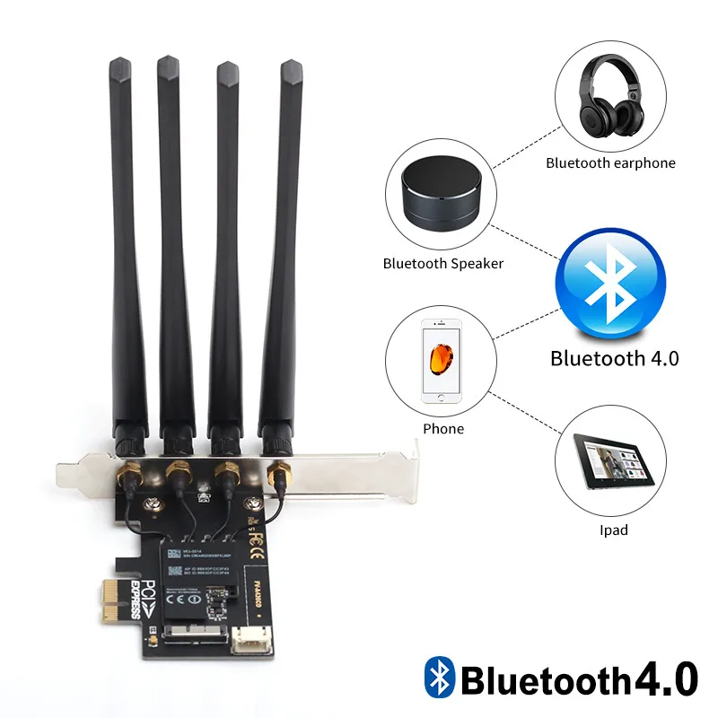 FV-T919 Двухдиапазонная PCI-E настольная Wifi карта 802.11AC Broadcom BCM94360 беспроводной Bluetooth 4,0 адаптер Mac OSX + PC/Hackintosh Windows 11