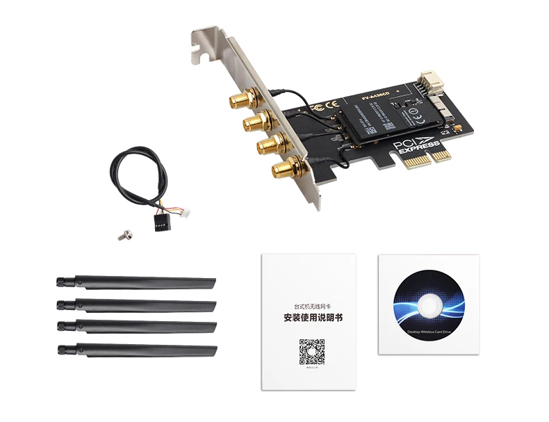 1 х FV-T919 Настольный беспроводной адаптер4 x антенна с высоким коэффициентом усиления1 х Bluetooth кабель1 х Руководство по установке1 x CD драйвер