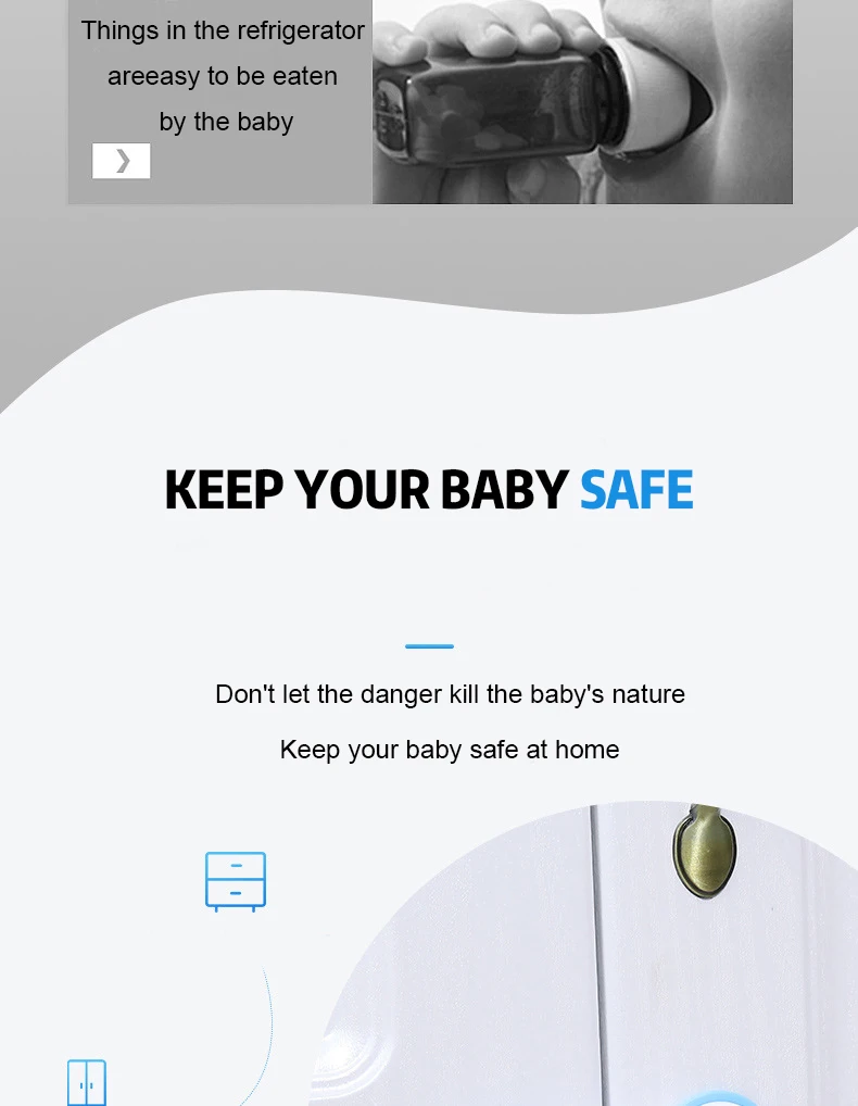 Используется для холодильников, стиральных машин/машин для химчистки, комодов, посудомоечных машин и другого оборудования для предотвращения открытия ребенка, еды или возгорания предметов внутри, чтобы избежать несчастных случаев