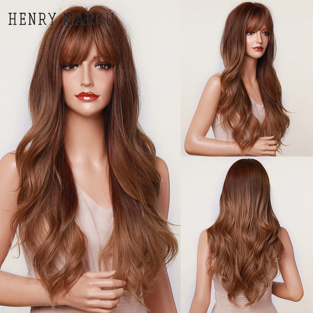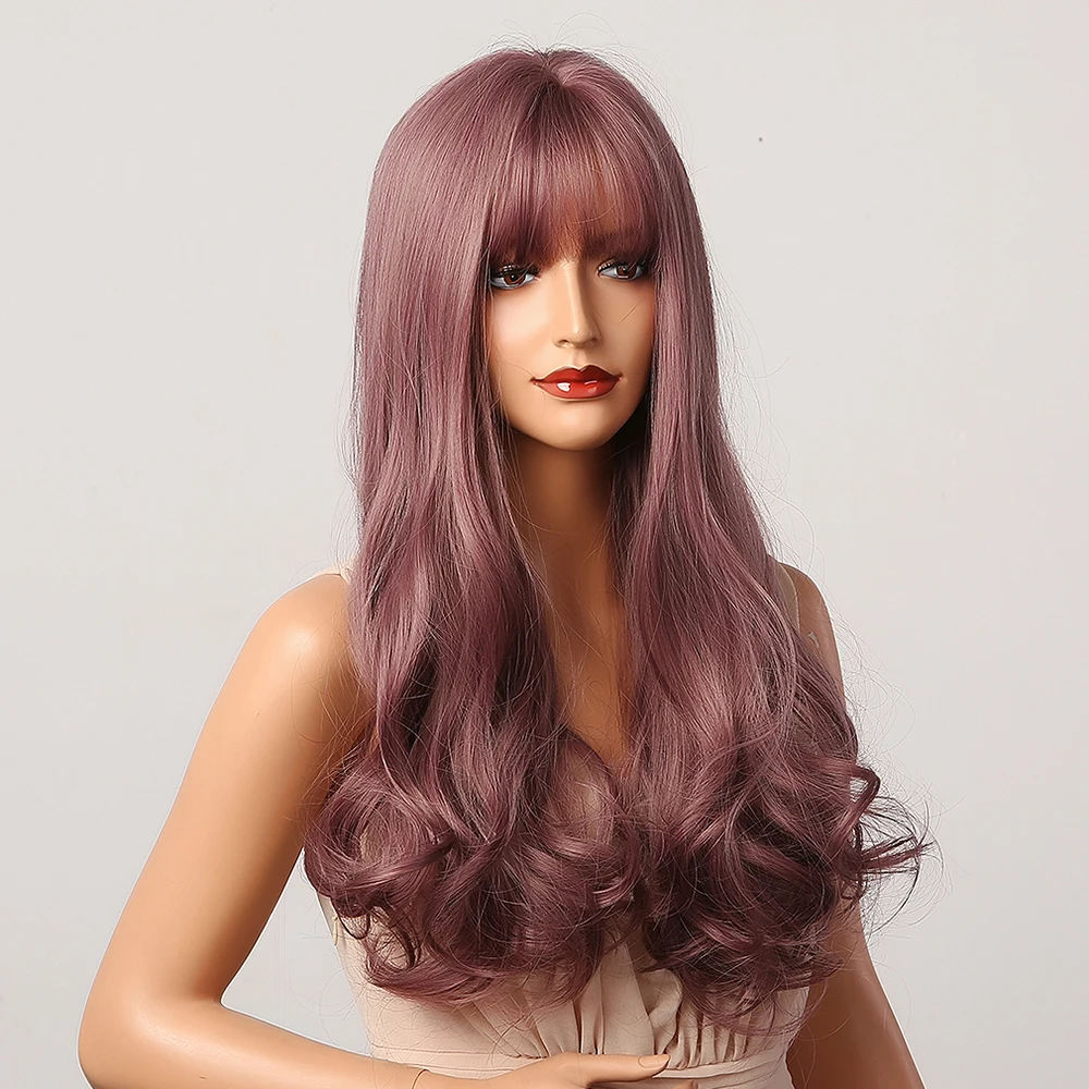Генри MARGU длинной волны синтетический парик Цвет: фиолетовый, розовый, накладные волосы парики с челкой ежедневно Косплэй вечерние парик для Для женщин афро термостойкие
