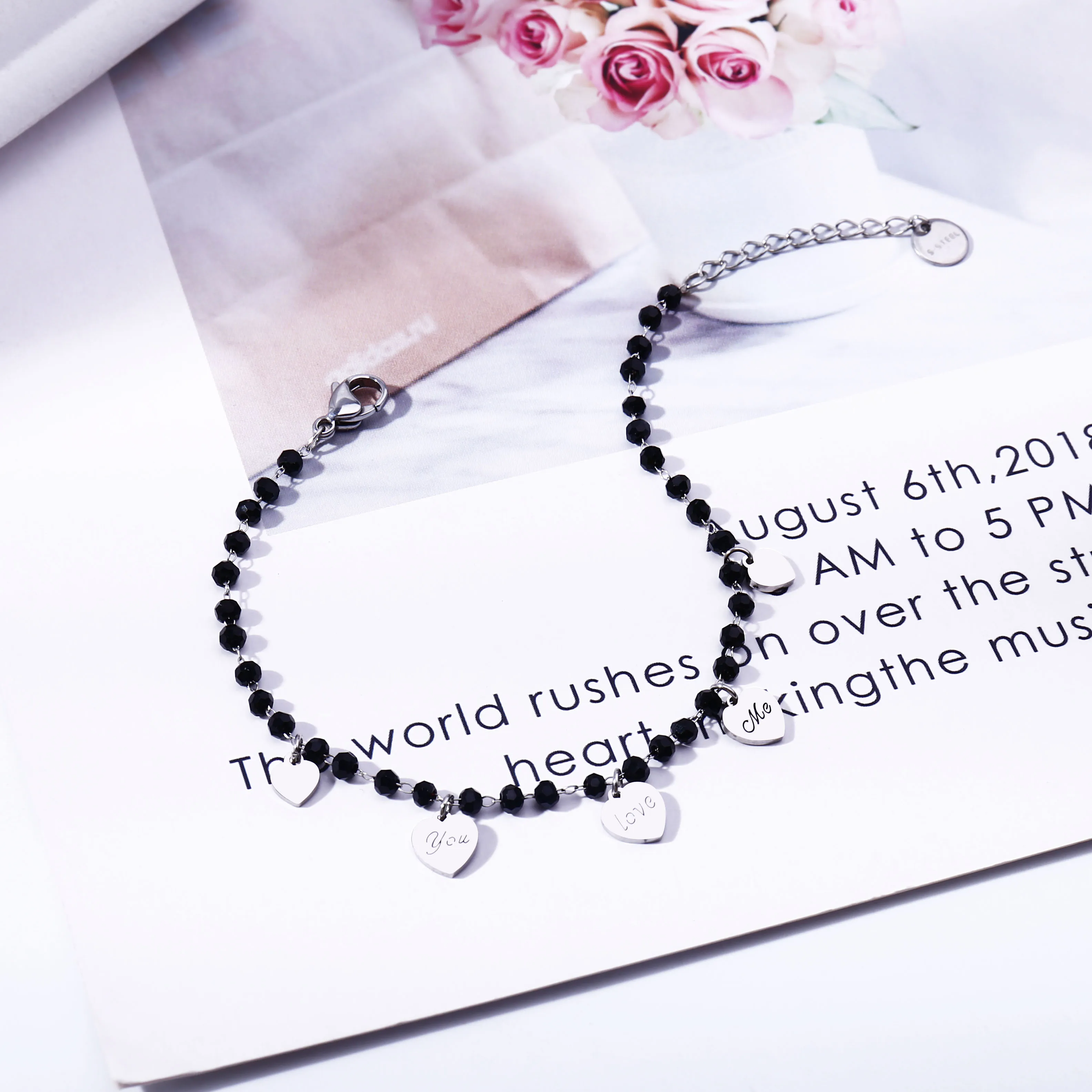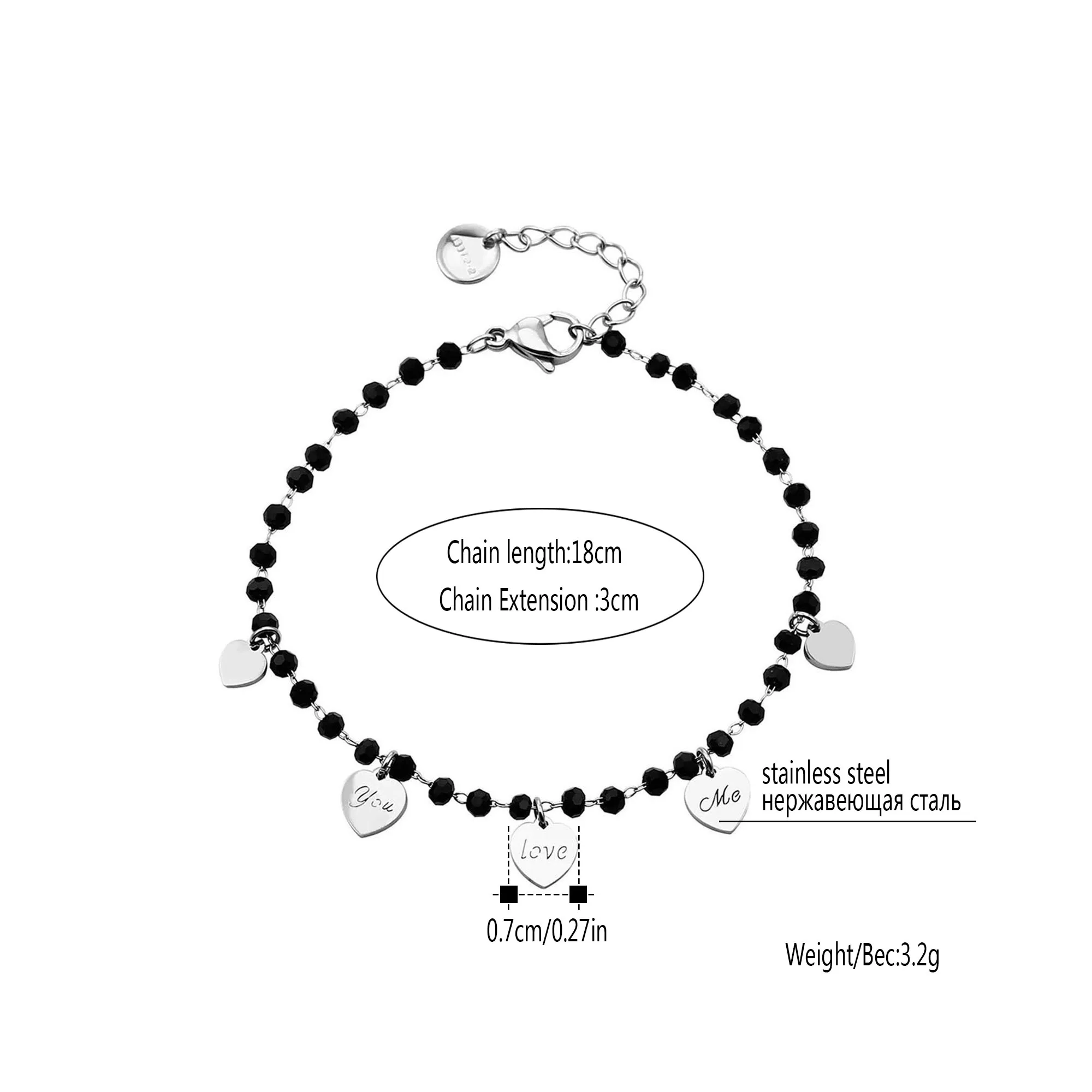Браслет-цепочка женский из нержавеющей стали, Ювелирное Украшение с подвеской в виде сердца с черными кристаллами и бусинами, хороший подарок на вечеринку