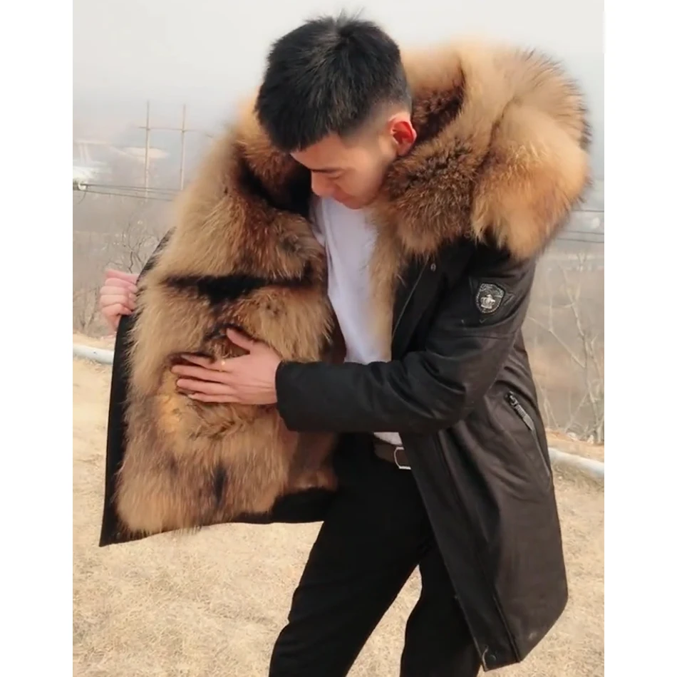 Мужские парки из натурального меха енота, классическое повседневное пальто для делового образа, теплая толстая верхняя одежда для зимы, 2020