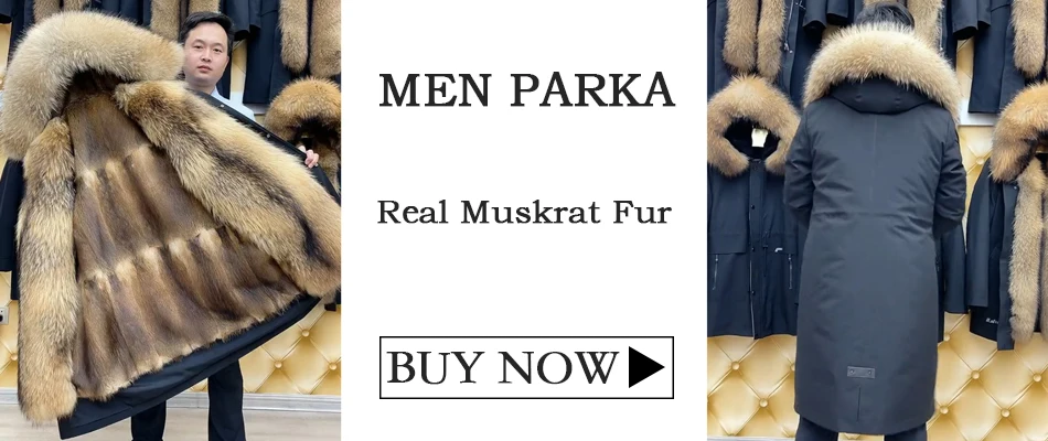 Зимняя парка, натуральное меховое пальто Muskrat, Мужская теплая ме...