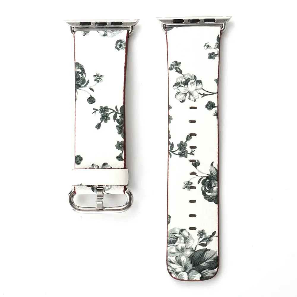 Кожаный ремешок с цветочным принтом для Apple Watch, ремешок 4238 4...