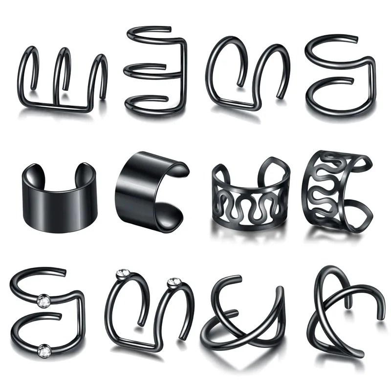 Набор каффов для ушей, 12 шт., из нержавеющей стали, поддельные сер...
