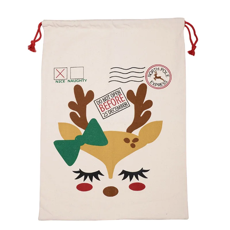 Применение: 100% новый хлопок, безопасный для контакта с кожей или едой, машинная стирка и ручная стирка, толстый и прочный мешок. Наши подарочные пакеты могут легко обернуть большой подарок или держать несколько мелких предметов. Рождественский узор-анти winkle, высококачественный продукт с рождественским дизайном. Идеальная сумка для хранения рождественского подарка.