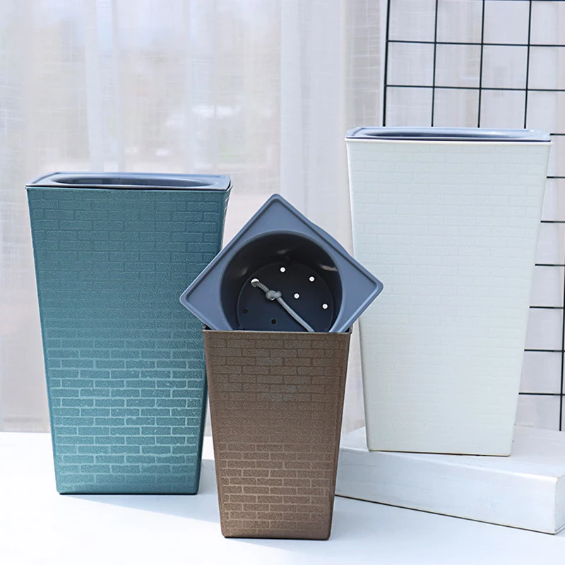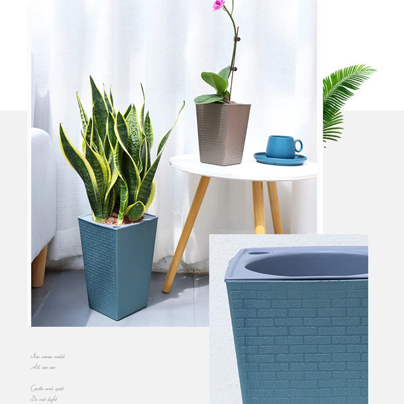 Цветочный горшок с имитацией кирпича, металлический пластиковый цветочный горшок, квадратный и высокий, для фотографий, уличный цветочный горшок