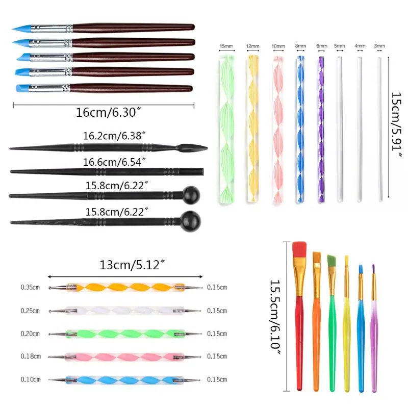 OOTDTYОсобенности:Это идеальный стартовый набор, который идеально подходит для начинающих или в качестве подарка.Различные формы гравировки доступны, чтобы сделать ваш дизайн более гибким. Вы можете использовать этот набор для создания красивых точек.Отличный инструмент Мандала dot art-это ультра-пластиковый светильник, который можно наносить на несколько часов без усталости тяжелых инструментов.Специально разработанные советы создают эффект точки и отлично подходят для эффекта точек.Просто следуйте контуру трафаретов, а затем выразите свое творческое воображение, пробуя различные узоры Мандала с различными размерами инструментов для рисования.Позволяет рисовать точки в течение нескольких часов без усталости от тяжелых инструментов. Нет острых краев, чтобы обрезать себя.Идеально подходит для рисования точек на камнях, холсте, ракушках или тыквах, создания точек или смешивания швов в глине, тиснения и многого другого.Только точечные инструменты мандалы, другие демонстрационные аксессуары на картинке не включены.Спецификация:Материал: нержавеющая сталь, акрил, силикон, пластикДлина акрилового стержня: 15 см/5,9 дюймаЦвет: как показано на фотографииКоличество: 33 шт./компл.Примечание:Нет розничной упаковки.Возможны отклонения в 0-1 см вследствие измерений вручную. Пожалуйста, убедитесь, что вы не возражаете, прежде чем сделать ставку.Из-за разницы между различными мониторами изображение может не отражать фактический цвет изделия. Спасибо!Посылка включает в себя:33 шт./компл. x Мандала Dotting Pen Tools