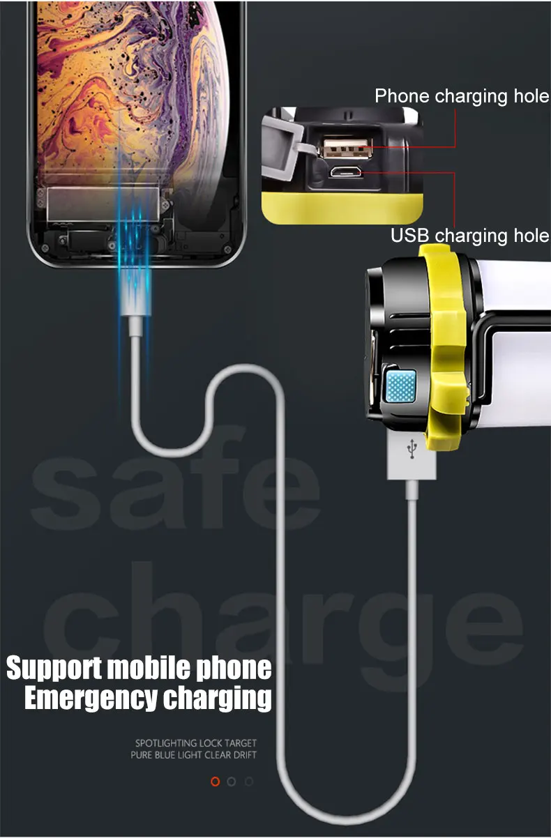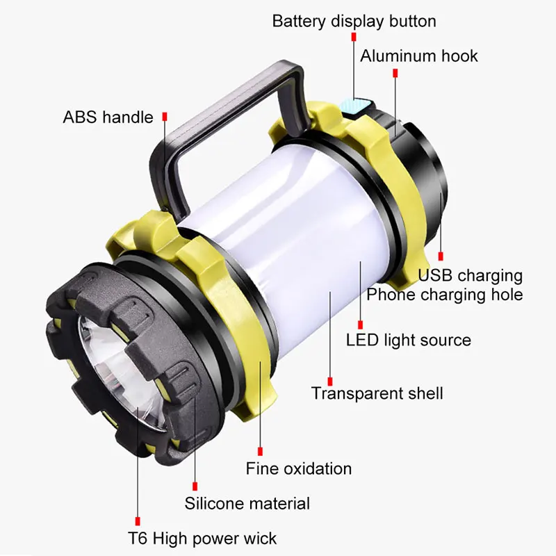 Usb-зарядкаОтверстие для зарядки телефонаСветодиодный светильник-источникПрозрачный корпусТонкое окислениеСиликоновый материалФитиль высокой мощности T6