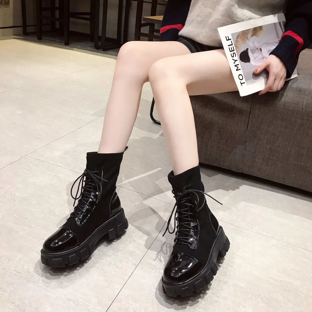 Женские замшевые ботильоны на платформе, полусапожки в стиле панкготика, со шнуровкой, обувь для взрослых, 2021
