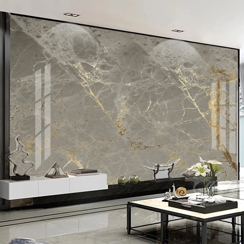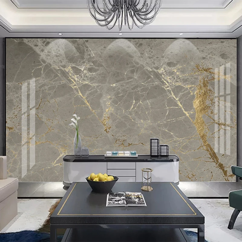 Пользовательские 3D обои современный Золотой Серый Мраморный МУРАЛ Гостиная ТВ диван роскошный домашний декор настенная живопись Papel De Parede Frescoes