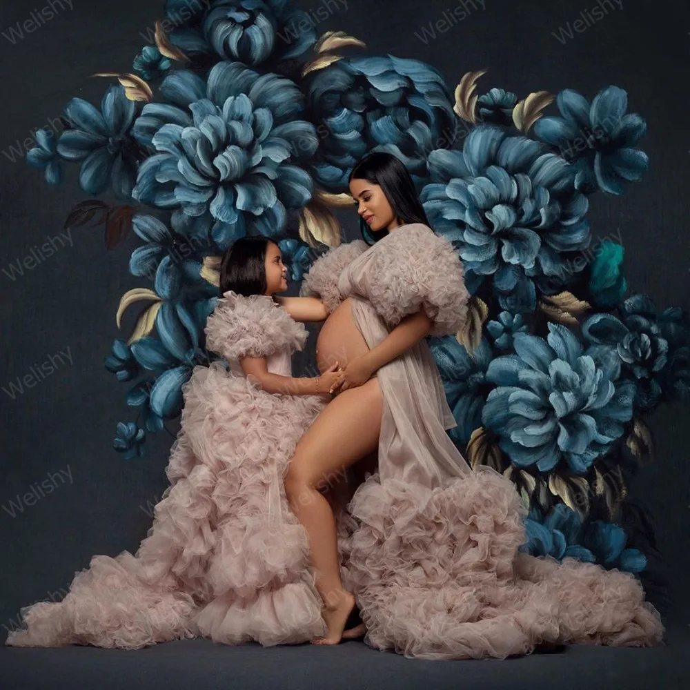 Изготовленное на заказ платье из тюля с оборками в несколько рядов платье для беременных и пышное женское платье для детей Одежда для мамы и ребенка