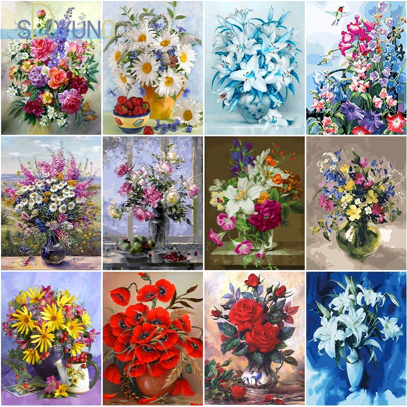 SDOYUNO DIY Набор для рисования по номерам цветы 60x75 см Раскраска...