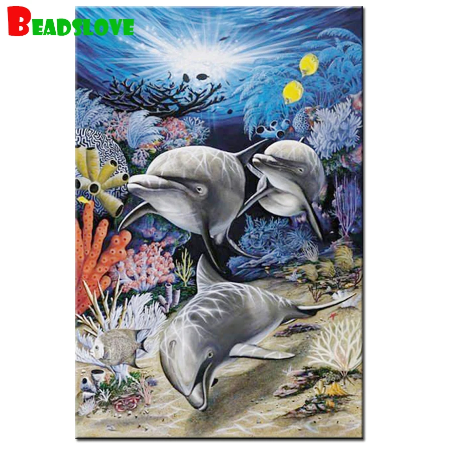 Алмазная живопись 5D сделай сам, вышивка крестиком, животные, дельфины в море, алмазная вышивка, узор, полная мозаика, домашний декор, искусство