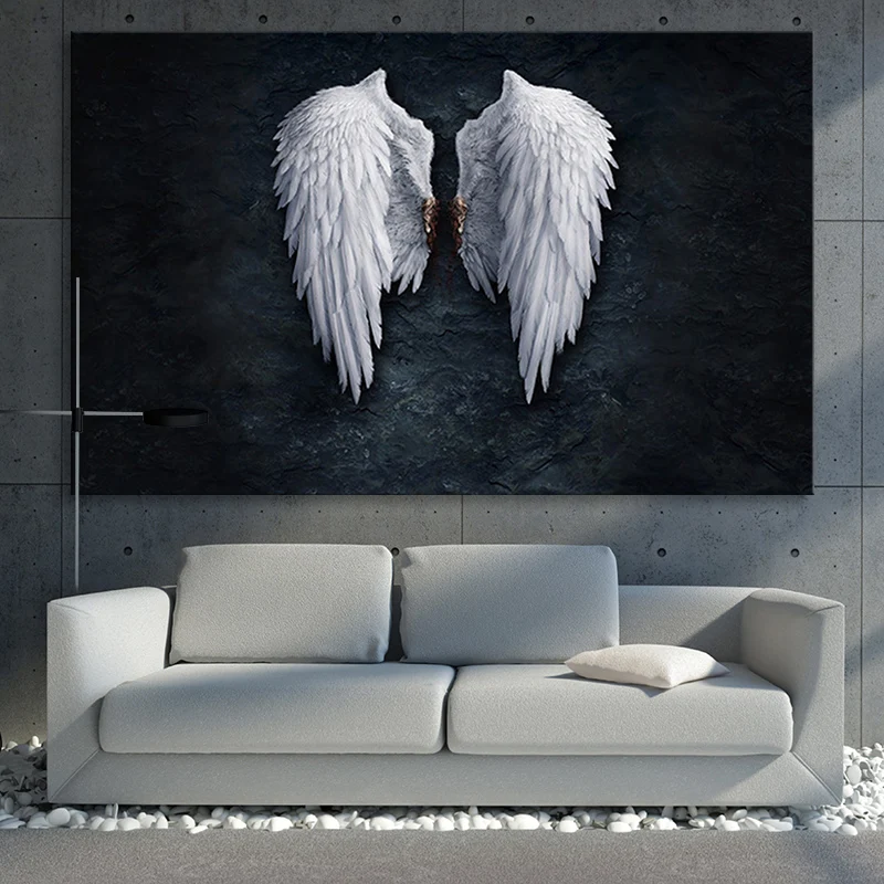 Дьявол и ангел любовь черное белое перо Крылья Ангела Холст Живопис...