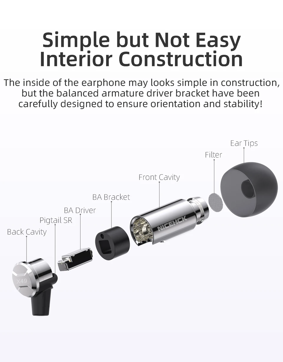 2020 NICEHCK X49 Одиночная BA сбалансированная арматура мини-наушники-вкладыши Hi-Fi металлические наушники-вкладыши Проводные музыкальные наушники с микрофоном для сна