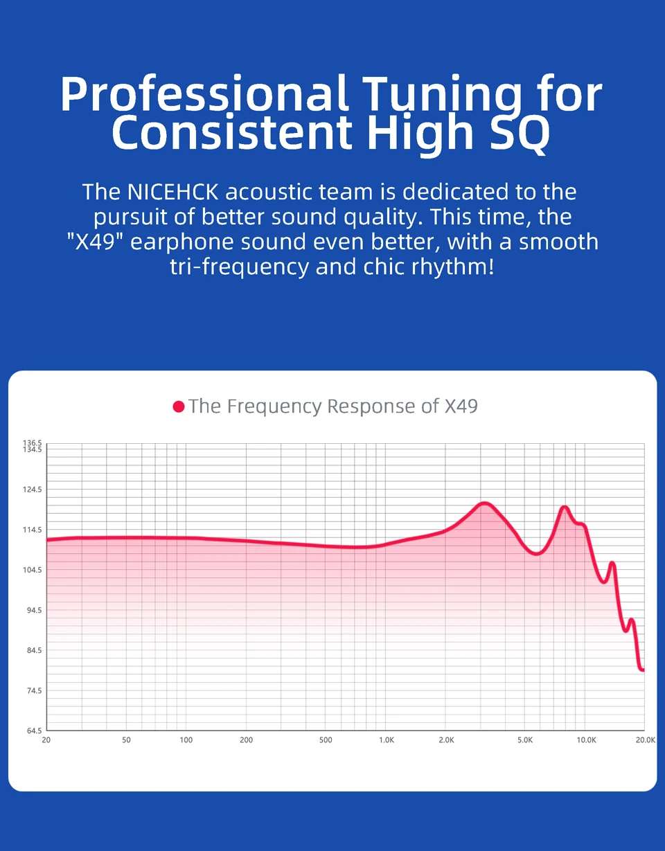 Спецификация: 1. Бренд и модель: наушники NICEHCK X49 2. Модель: X49 3. Тип изделия: вкладыши 4. Частота: 20-20000 Гц 5. Сопротивление: 22 Ом 6. Материал кабеля: чистая медь 7. Длина кабеля: 1,2 м ± 3 см 8. Тип штекера: 3,5 мм позолота 9. Цвет: яркий серебристый 10. Чувствительность: 110 дБ/мВт 11. Материал корпуса: чистая медь (покрытие поверхности) 12. Микрофон: опции (без микрофона/с микрофоном) 13. Использование: сон, музыка, игры, сериалы 14. Тип штекера наушников: линейный 15. Категория наушников: HIFI, монитор 16. Приводной блок: одинарный сбалансированный арматурный привод