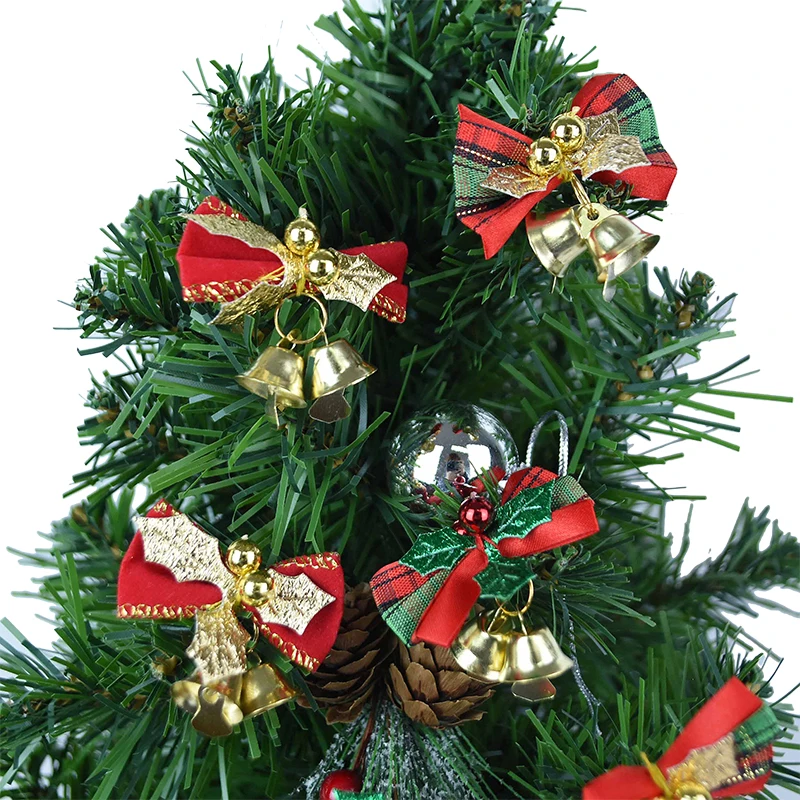 Украшения для рождественской елки, с колокольчиками, красные, зелен...