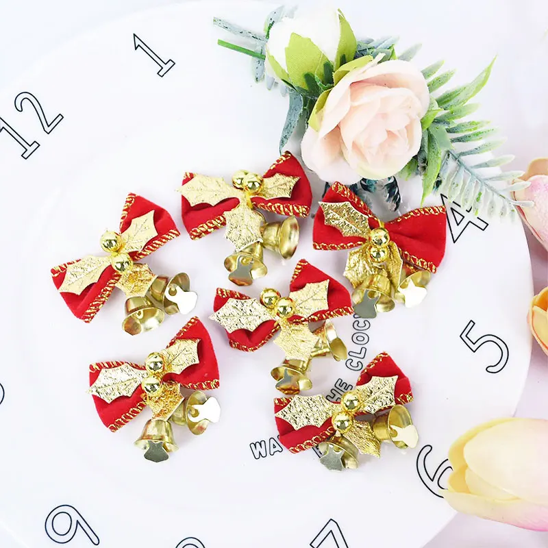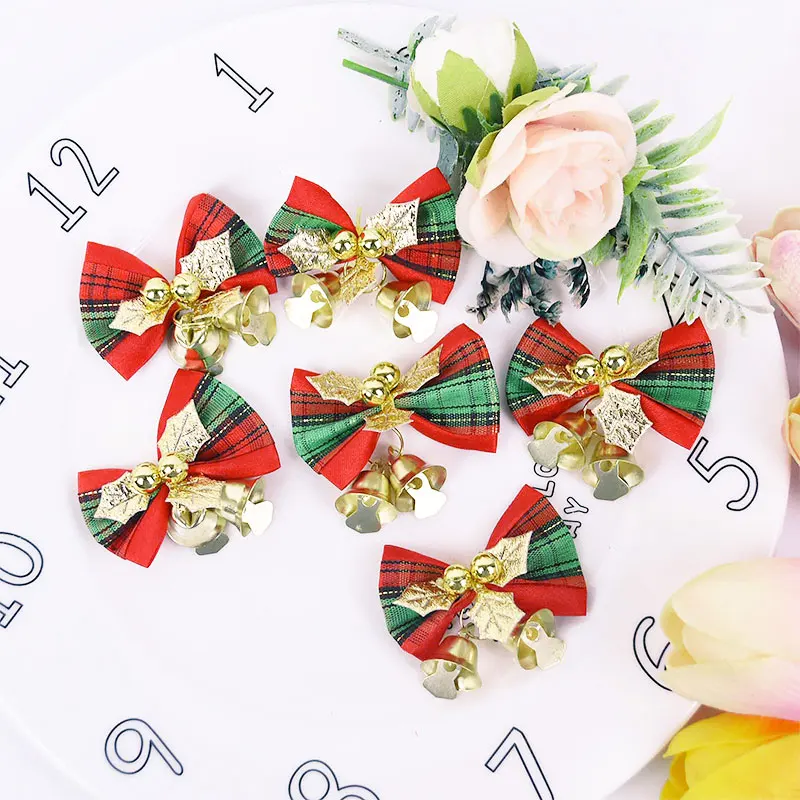 6 шт Мини банты для елки 4 см полиэстер ленты украшения бантики для рождественской елки украшения колокольчиков