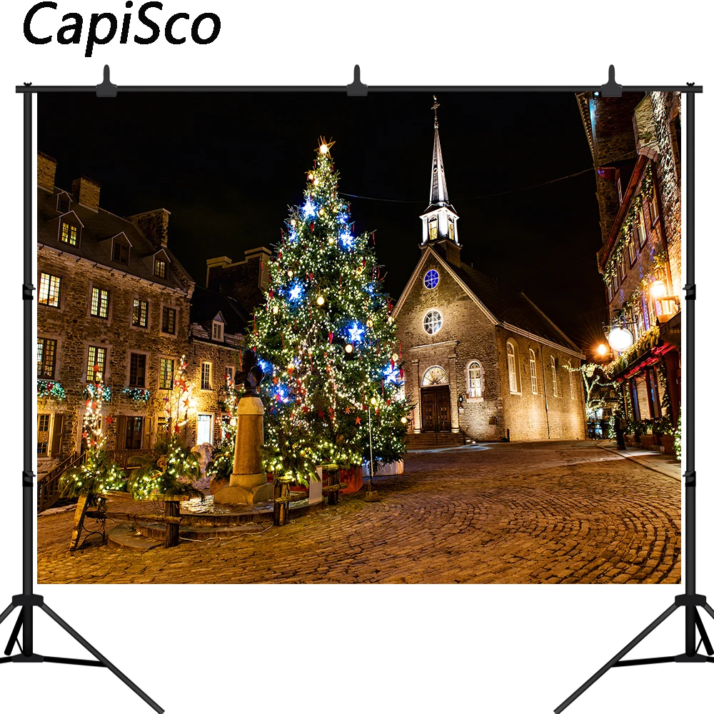 Capisco фон для фотосъемки Старый город улица звезды для рождественской елки венок церковь новый год сценический фото фон студийный реквизит