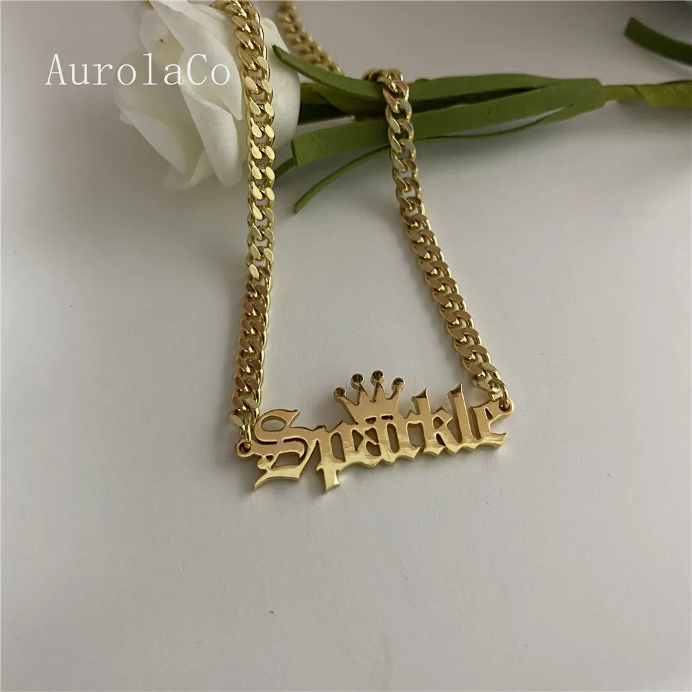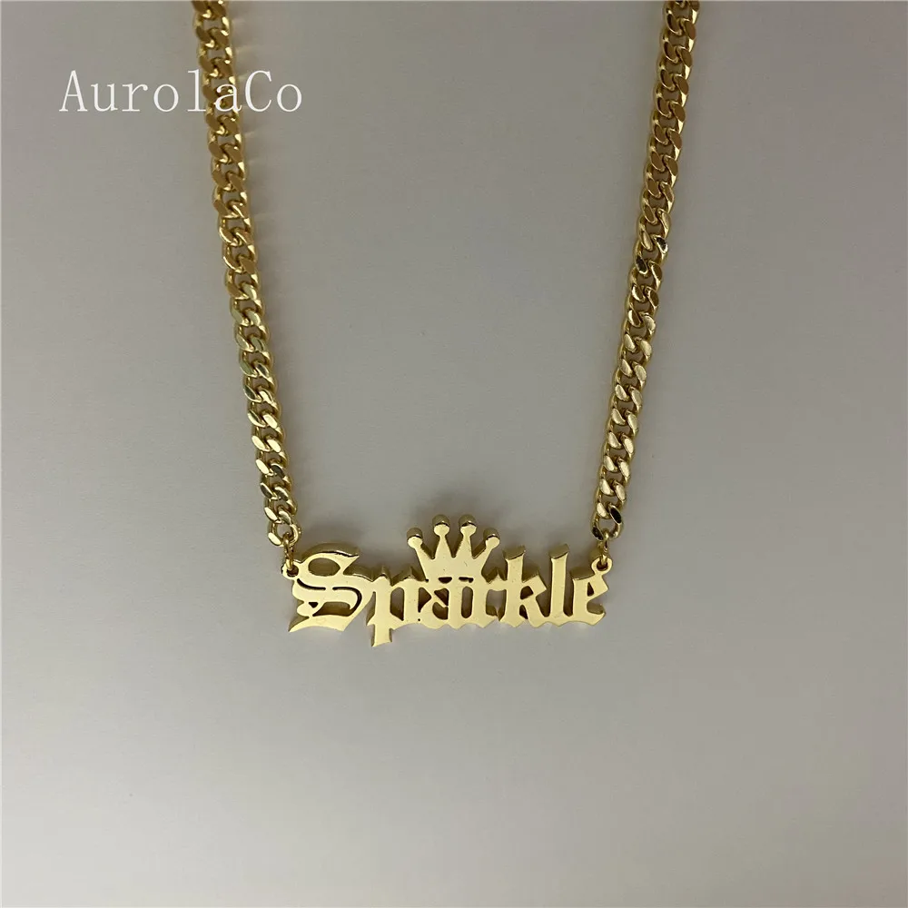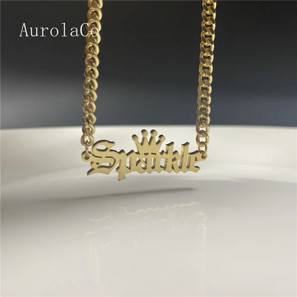 Ожерелье с именем на заказ, кулон золотого цвета, кубинская цепочка индивидуальная именная табличка, ожерелья для женщинмужчин, подарки
